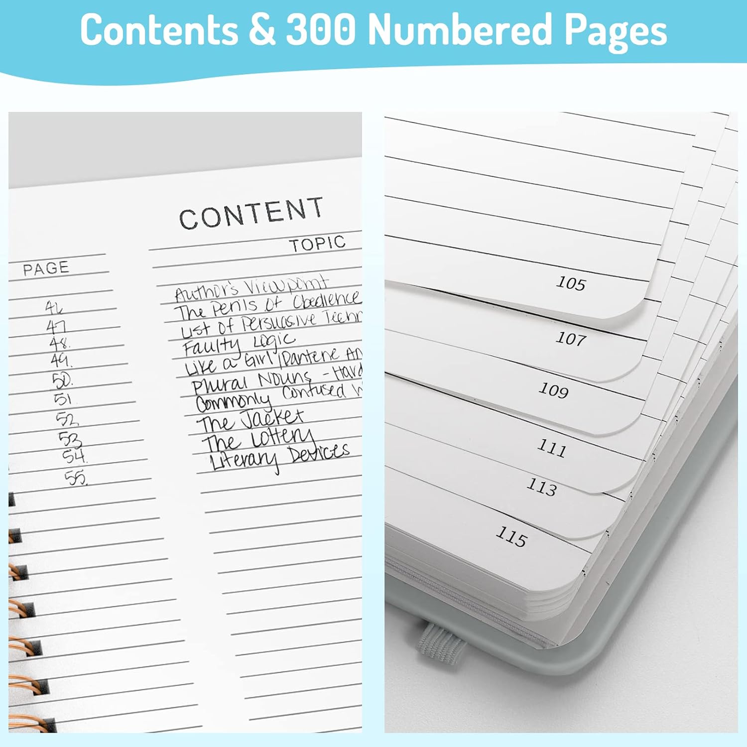 Forvencer Lined Spiral Journal Notebook with 300 Numbered Pages, B5 College Ruled Thick Journals for Writing with 100GSM Paper, Hardcover Notebooks with Contents for Work, School, Women, Men, Grey
