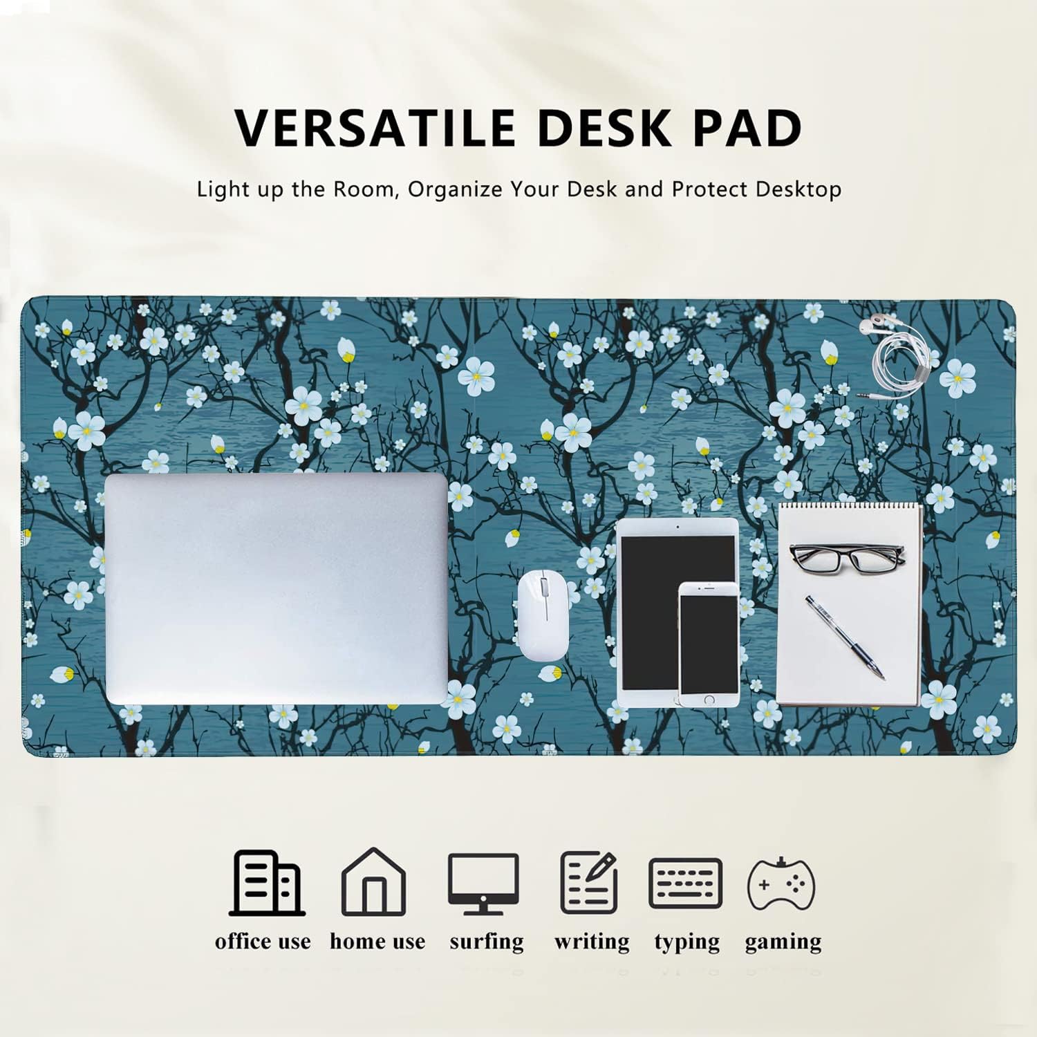 Japanese Cherry Blossom Extended Gaming Mouse Pad Large Desk Mat with Non-Slip Rubber Base and Stitched Edges,Keyboard Mouse Mat Desk Pad for Work,Game,Office,Home 35.4 * 15.7 Inch