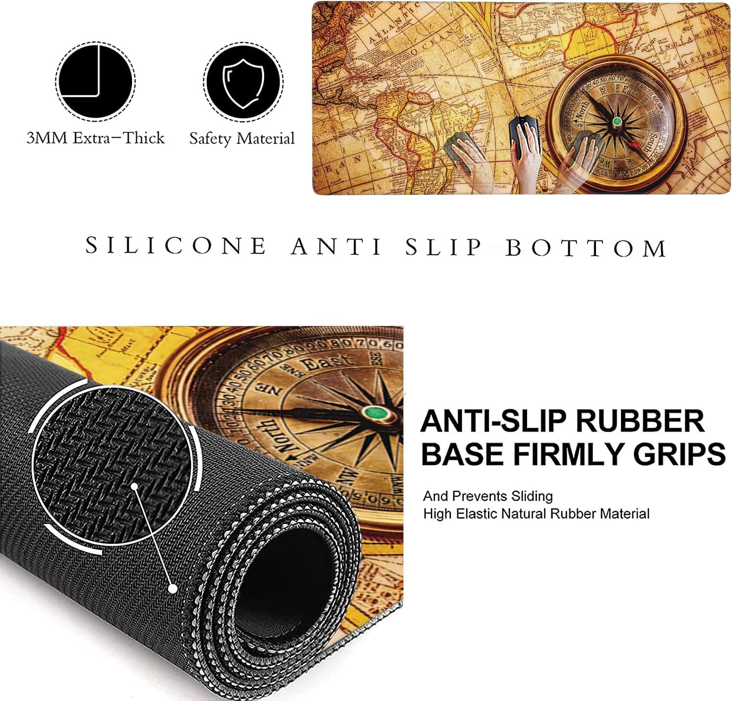 - 【Stable Rubber Base】Desk Mat with Rubberized Grip and Texture,Letting You use This Mouse Pad on Any Surface.It Can Effectively Prevent The Mouse And Keyboard From Sliding and Moving for Stable Operation.While Sturdy,It's Flexible Enough to be Rolled Up for Easy Transport,to Move Around So You Can Work or Game Wherever You Want.