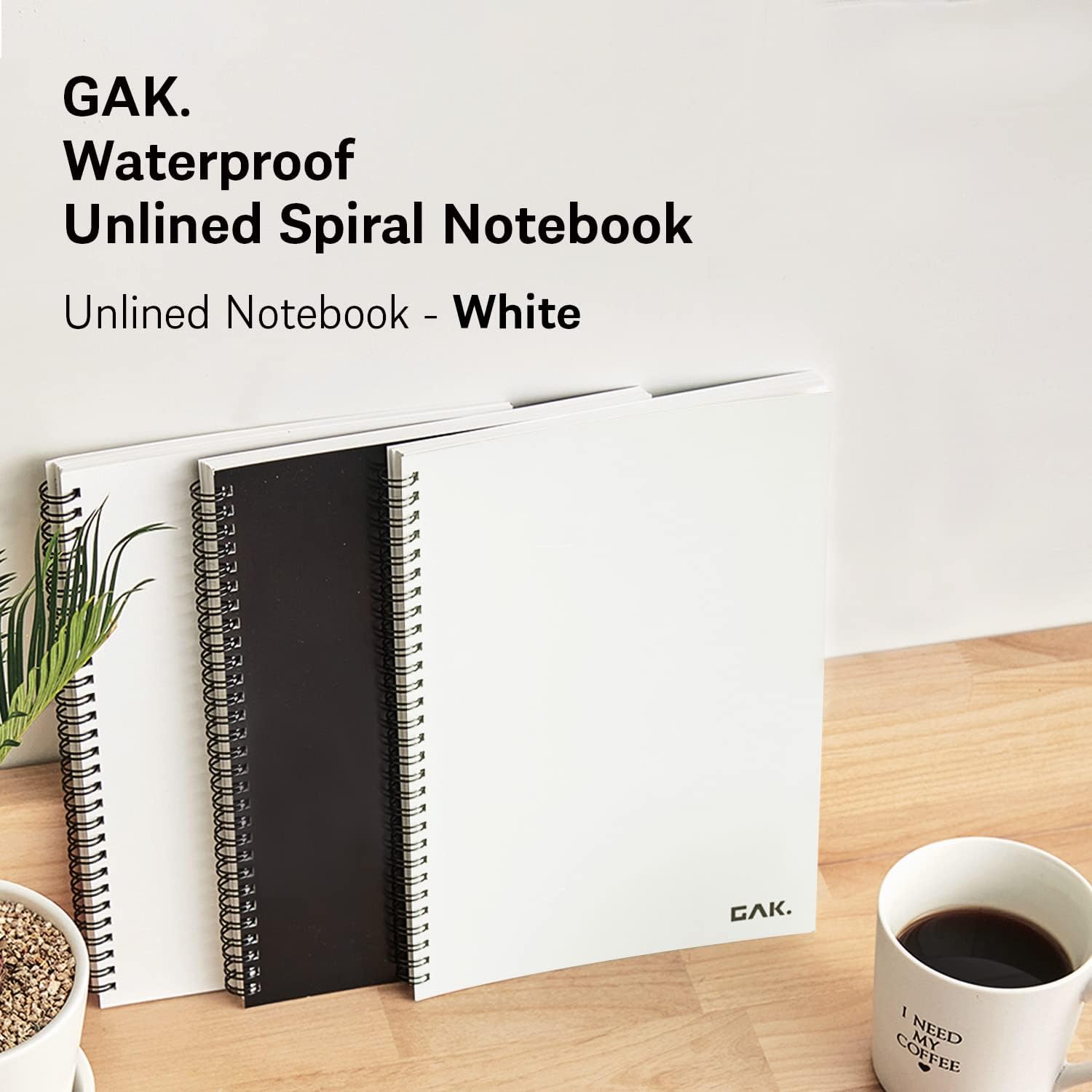 GAK. Stone Paper Notebook | No Lines Spiral Notebook Waterproof Sheet Aesthetic Journal for Note Taking | Notebooks for Work & Aesthetic School Supplies | Medium Size, White (5.8”x8.3”, 50 sheets)