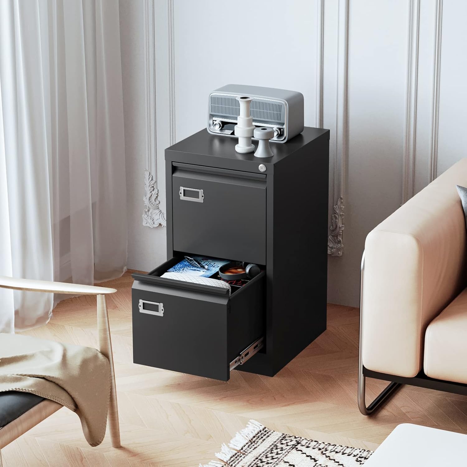 2 Drawers Vertical File Cabinets - 17.8" Deep Lockable Filing Cabinet - Black Metal Storage Cabinets for Home Office to Hanging Files Letter/Legal/F4/A4 Size