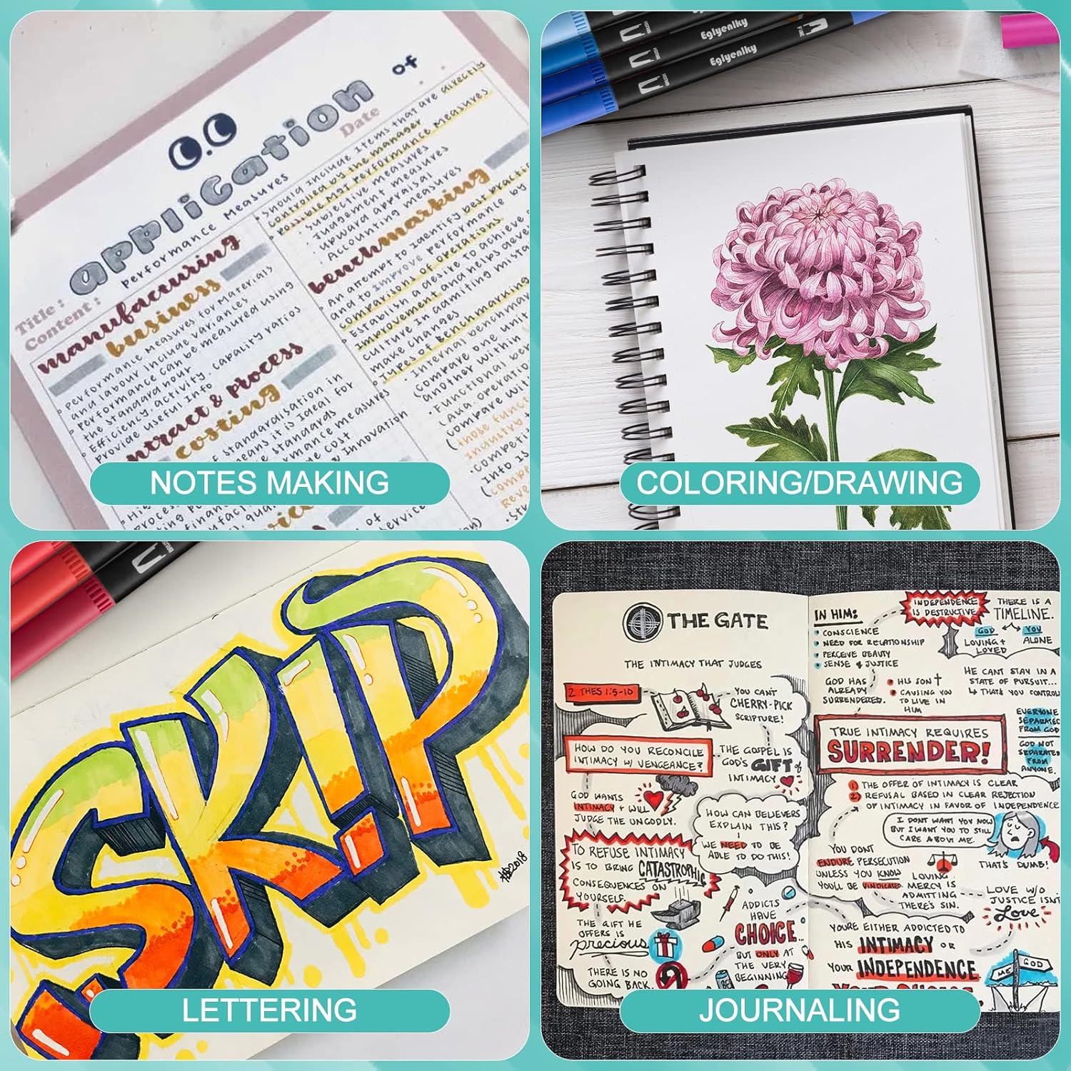 - VERSATILE USE and GREAT GIFT - Our colored markers are perfects for adult coloring books, journaling, brush lettering, sketch, illustrations, drawing, card making, stamping, scrapbooking, notebook, calendar, signing, design, art project and more! Our creative art craft supplies and art dual tip markers are the ideal gift for students, kids, girls, women, men, artists and beginners at Graduations, Birthdays, etc.