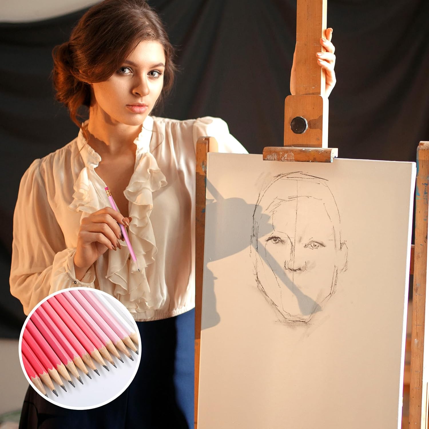TecUnite 120 Pcs #2 HB Pencils with Eraser No 2 Unsharpened Wooden Hexagonal Pencils for Adults Gifts for School Exam art Learning Office Sketching(Pink Series)