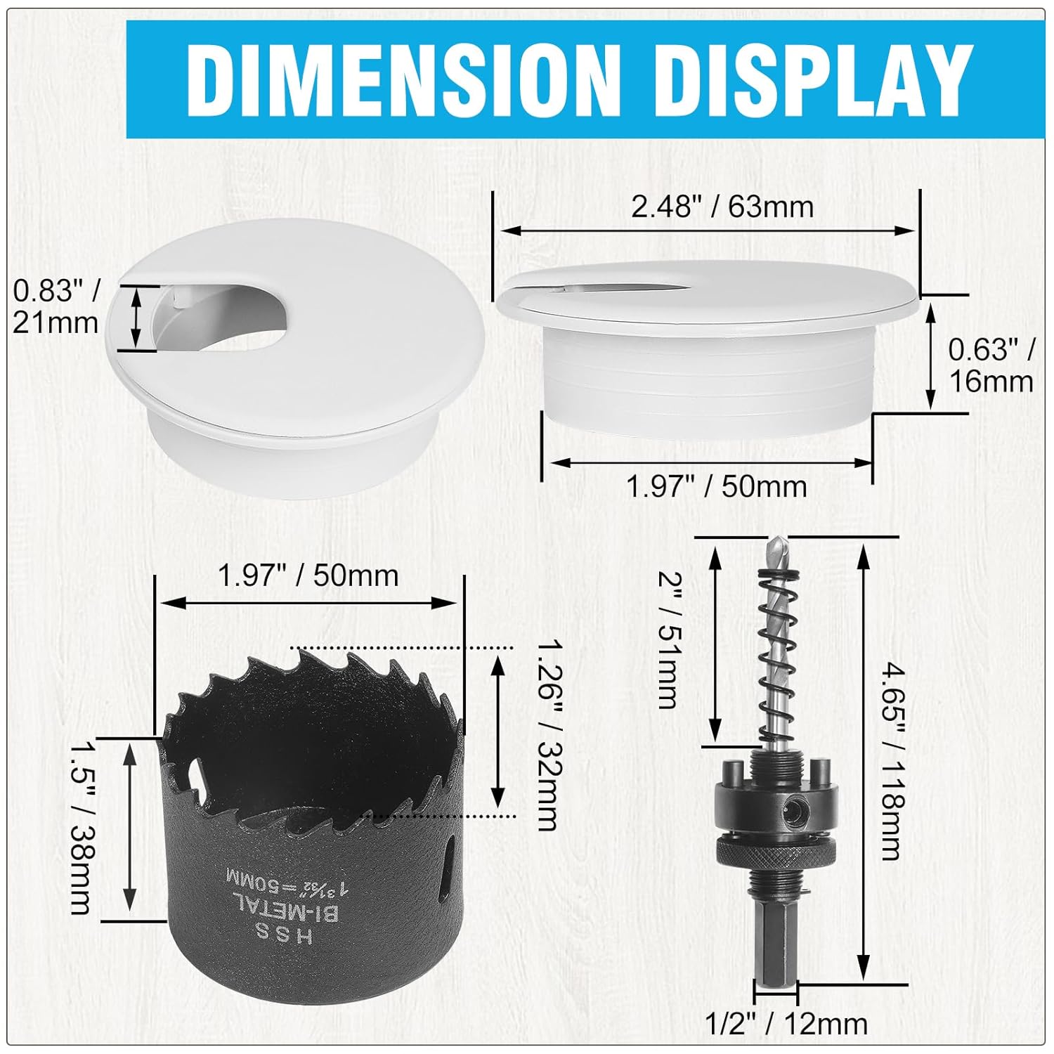 - DELIGHTS PACKAGE -- Your package includes 6 x 2" desk grommets, 1 x 2" hole saw. Useful Tips: 1.Start by vertically and slowly cutting a slot, 2.Maintain even pressure while cutting, and keep your pace slow to avoid damaging the surface, 3.Periodically clean the desk grommet area to prevent accumulation of debris.