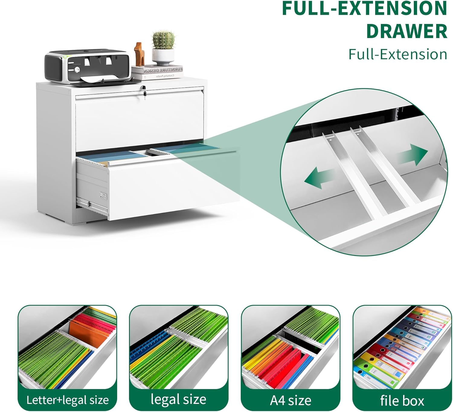 - 【Sturdy & Durable Construction】Lateral filing cabinet with 2 drawer is made of high-strength all-steel material, which is sturdy and not easily deformed. The powder-coated surface can protect it from corrosion and rust, further extending its service life. Wide lateral filing cabinet holds 220 lbs and holds printers, scanners and more.