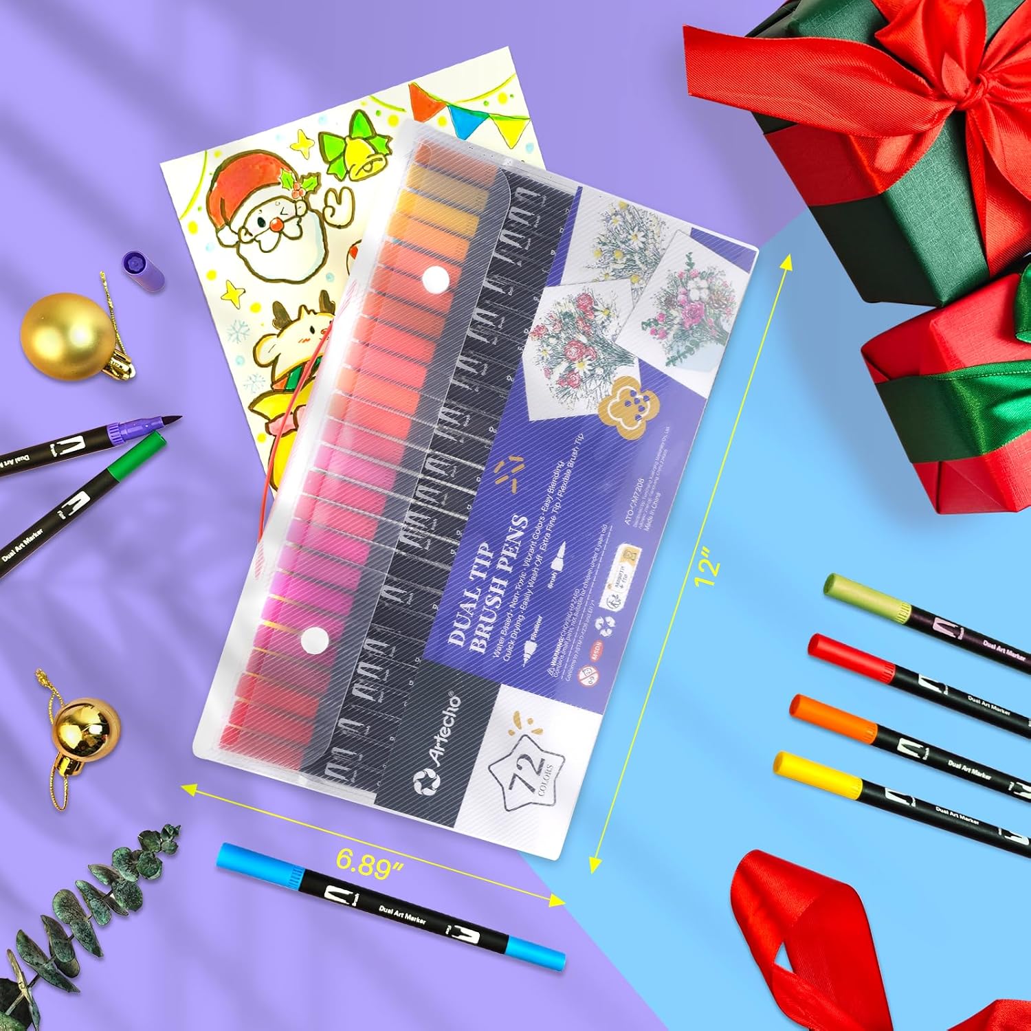 - Ideal gifts, Artecho dual brush pen set is an ideal art gift for family, friends for birthdays, Halloween, Thanksgiving, Christmas, etc.