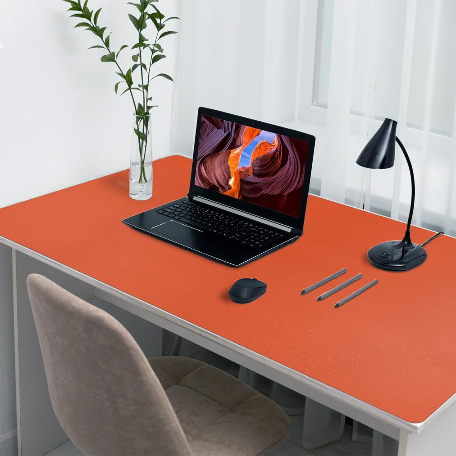 Boutilon Leather Desk Pad Protector,Non-Slip Mouse Pad,Laptop Desk Pad,Office Mouse Mat,Waterproof Leather Desk Blotter,Desk Writing Pad for Office and Home (XXXL-Orange H,47"x 24")