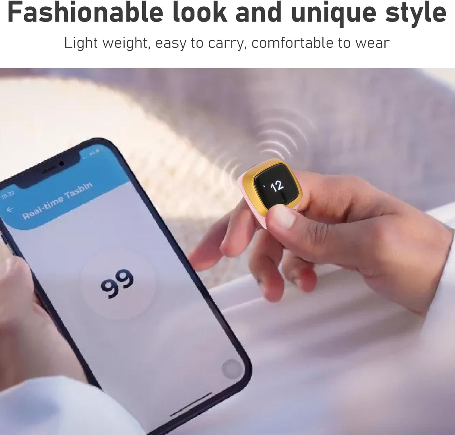 - Screen Display: Finger ring has a built in 0.49inch organic light emitting diode display with 72x40 resolution, which can perfectly display the time, number of chants, and number of prayers.