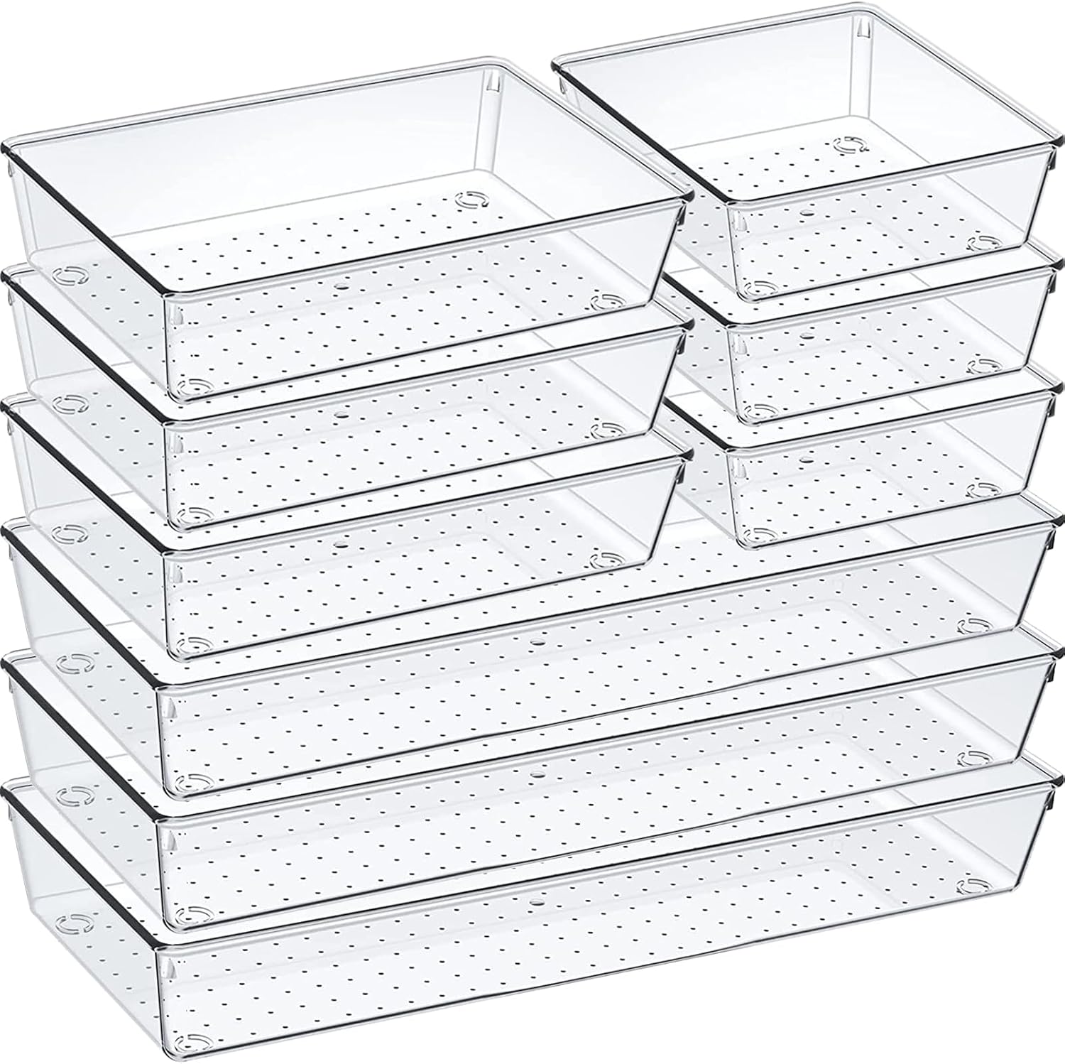 9 Pack Clear Plastic Drawer Organizer Set, Acrylic Non Slip Non Cracking Kitchen Drawer Storage Tray Large Size Divider, Multifunctional Storage for Cosmetics, Bathroom, Tools, Kitchen and Office