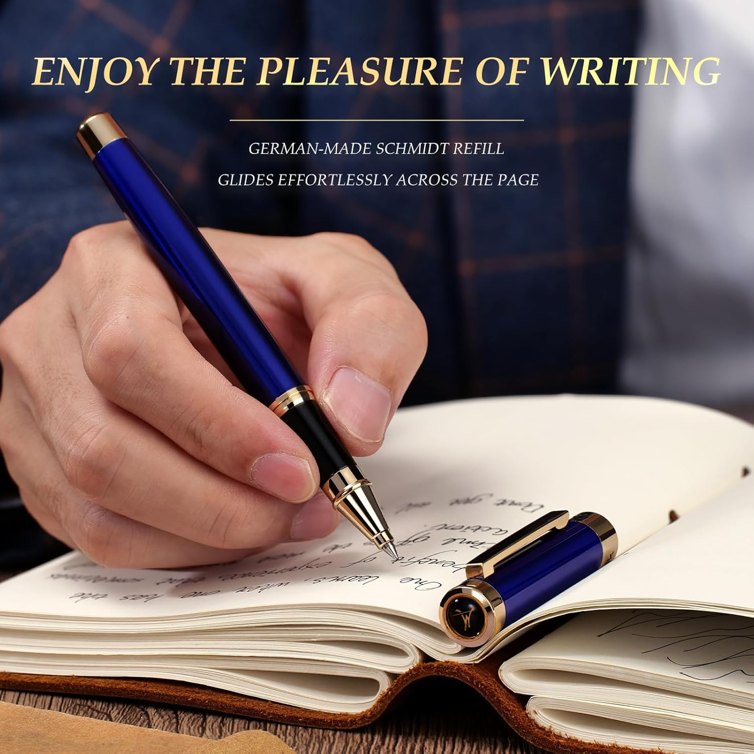 - Luxury craftsmanship-The pen is precision-turned from solid brass components, blue lacquer, elaborated 24K Gold Finish, exquisitely engraved logo at the tail end, enjoy the feeling brought by the MCNTEIK rollerball pen, luxury, power and sophistication.