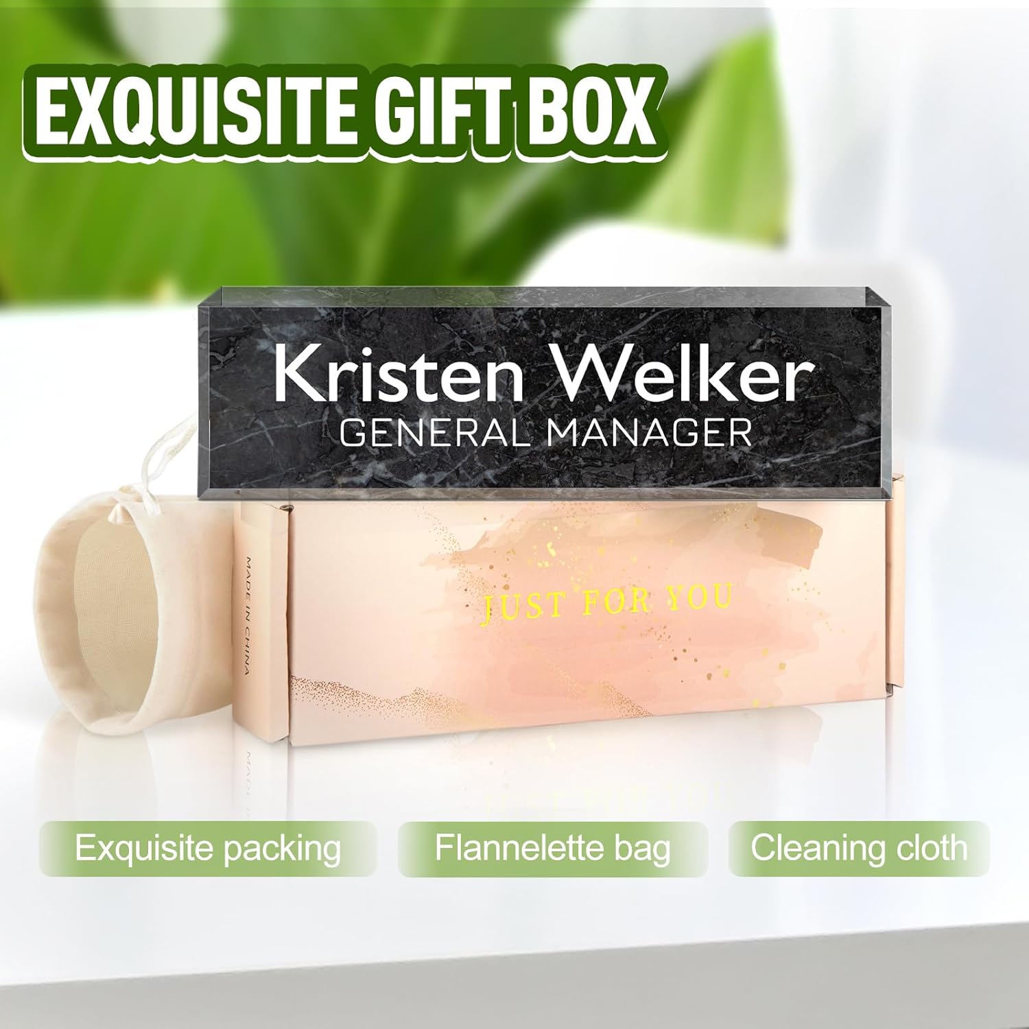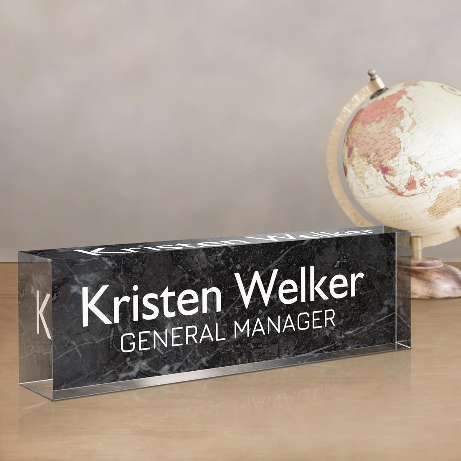 Gowellly Desk Name Plate Personalized - Custom Acrylic Name Plate for Desk - Enterprise Custom Logo/Text nameplates - Employee Appreciation Gifts (Black Marble)