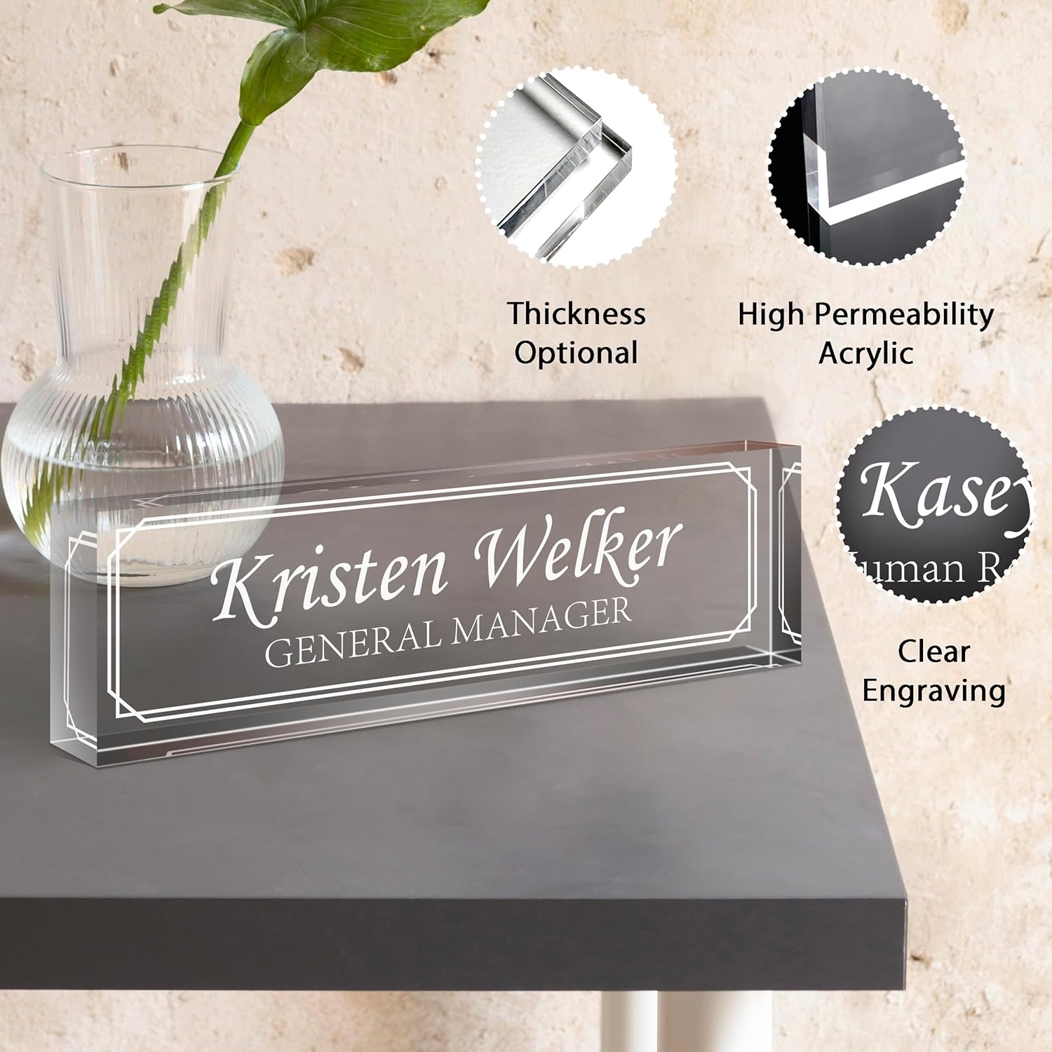 Gowellly Desk Name Plate Personalized - Custom Acrylic Name Plate for Desk - Enterprise Custom Logo/Text nameplates - Employee Appreciation Gifts (engrave-3)