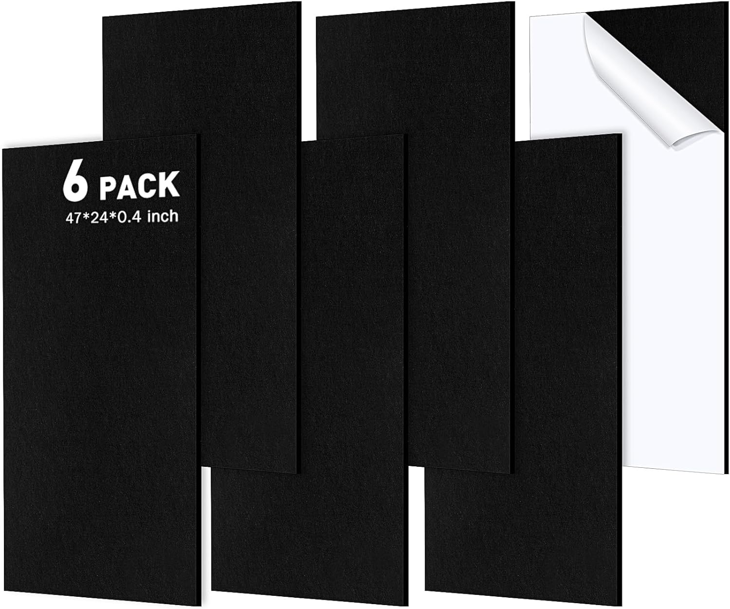 Frienda 6 Pack Large Acoustic Panels 47 x 24 x 0.4 Inch Fabric Wrapped Sound Proof Self-adhesive High Density Foam Panels for Recording Studio Acoustical Treatments Home Office(Black)