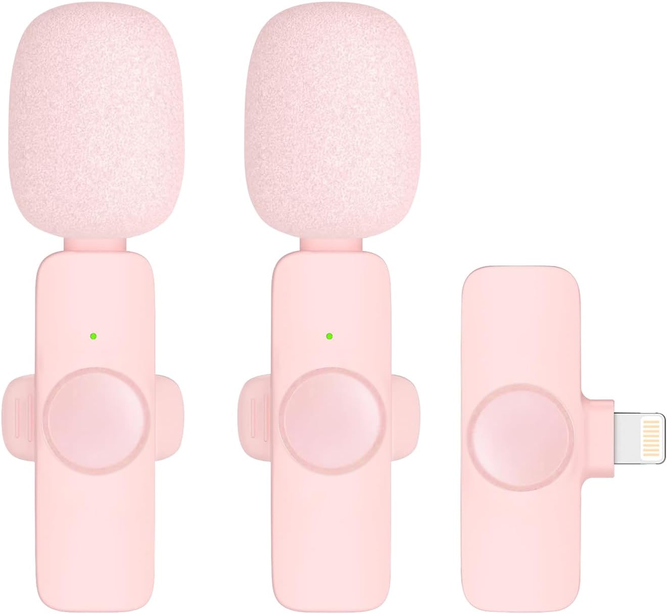 2 Pack Professional Wireless Lavalier Microphone for iPhone iPad (iPhone 14 and Below), Lapel Mics Plug-Play Clip on Lapel Mic for YouTube, Recording, Vlog, Facebook Live