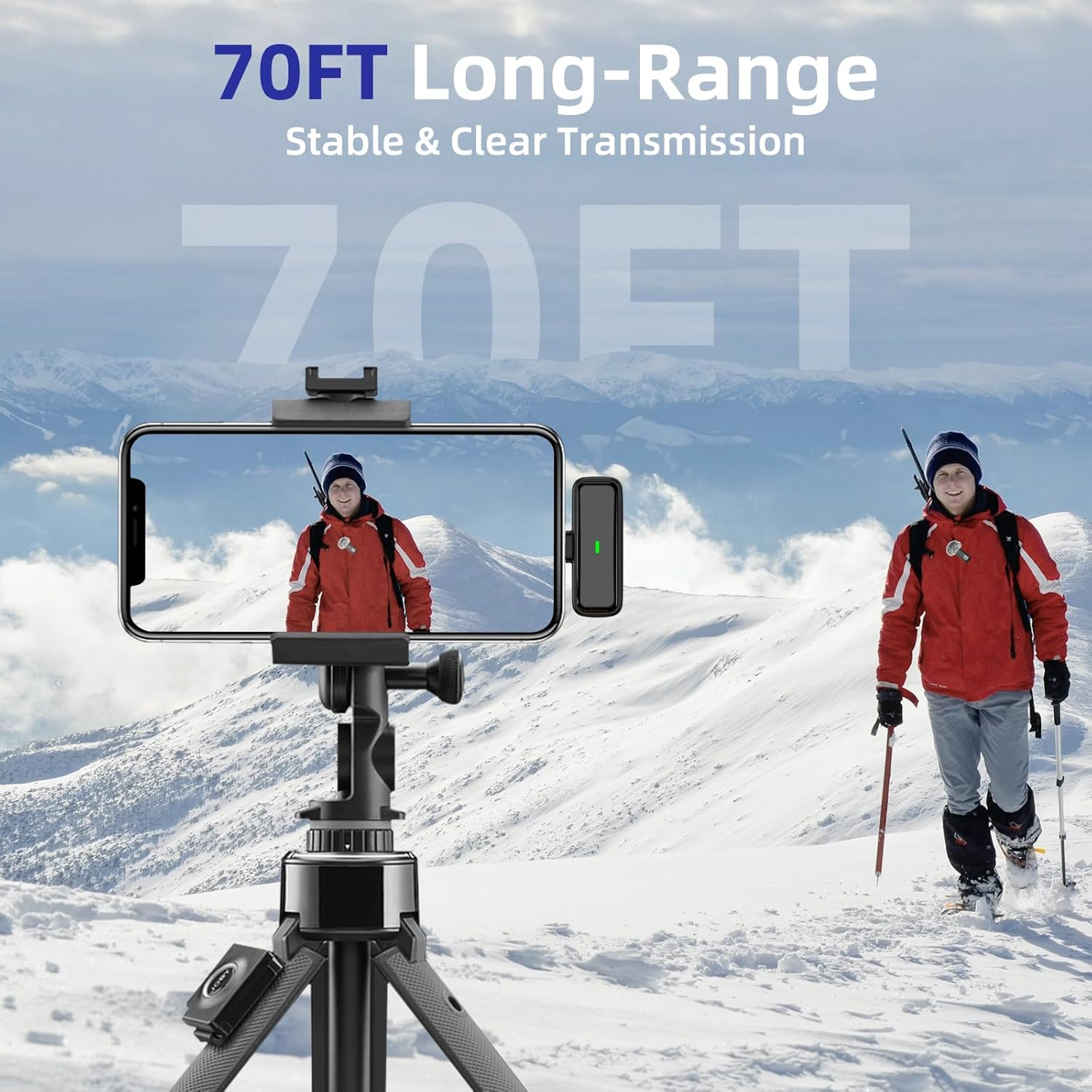 - 70 Ft Long Range Recording: The maximum effective distance of this cordless lav mic reaches up to 70 feet. These tiny mics come in handy when you have to stand far away from you phones to record. These lapel microphones also enjoy steady and low latency recording, providing optimal experience for long distance recording.