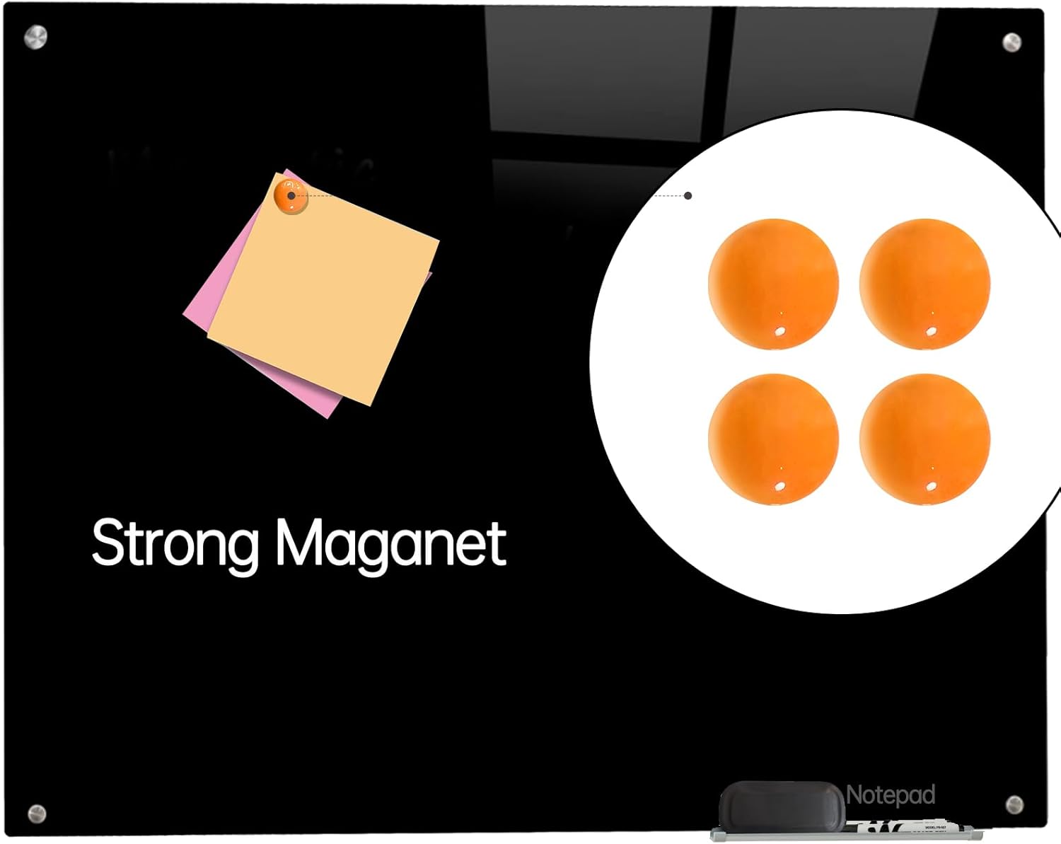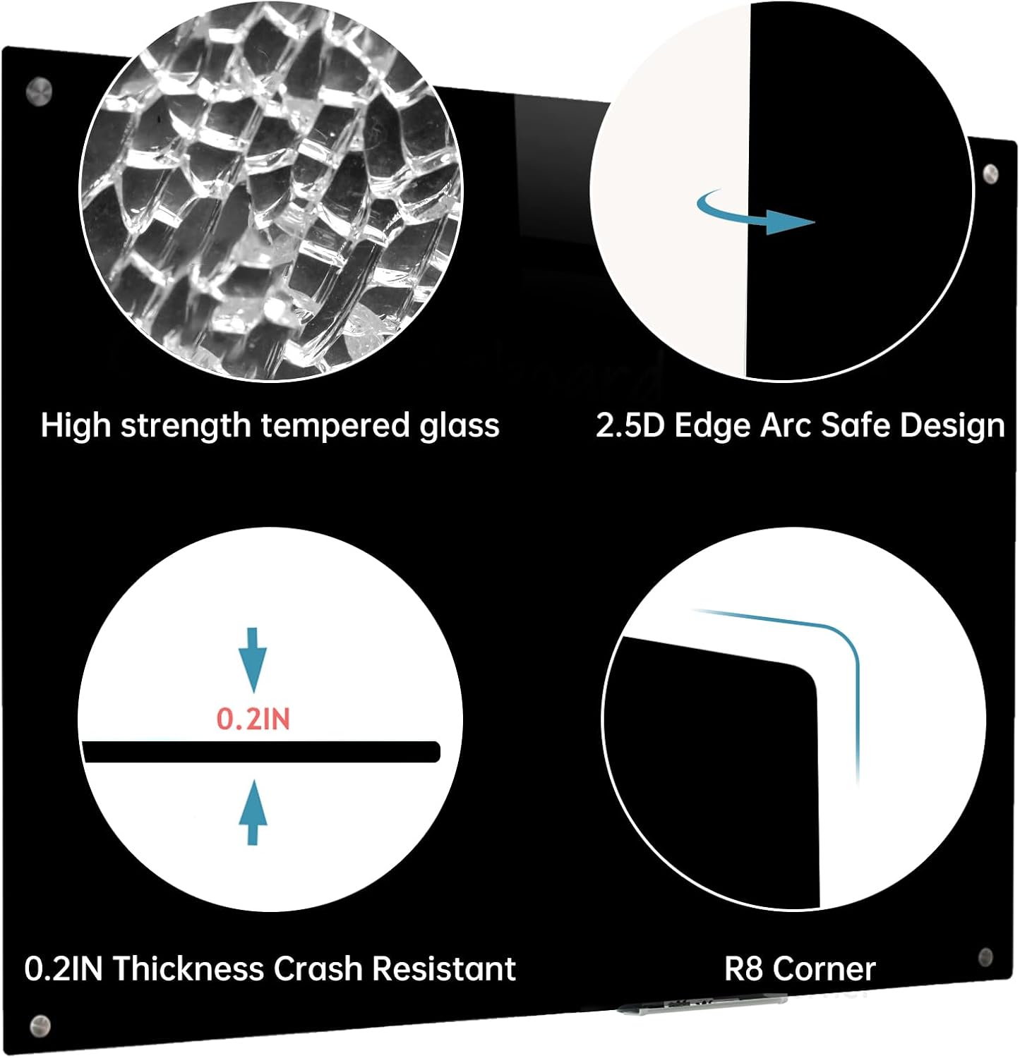 Glass Black Board Magnetic Dry Erase Board - Black Board 48 x 36 Inches Wall Mounted Glass Blackboard, Large Frameless Glass Black Board for Wall Office, Home & School