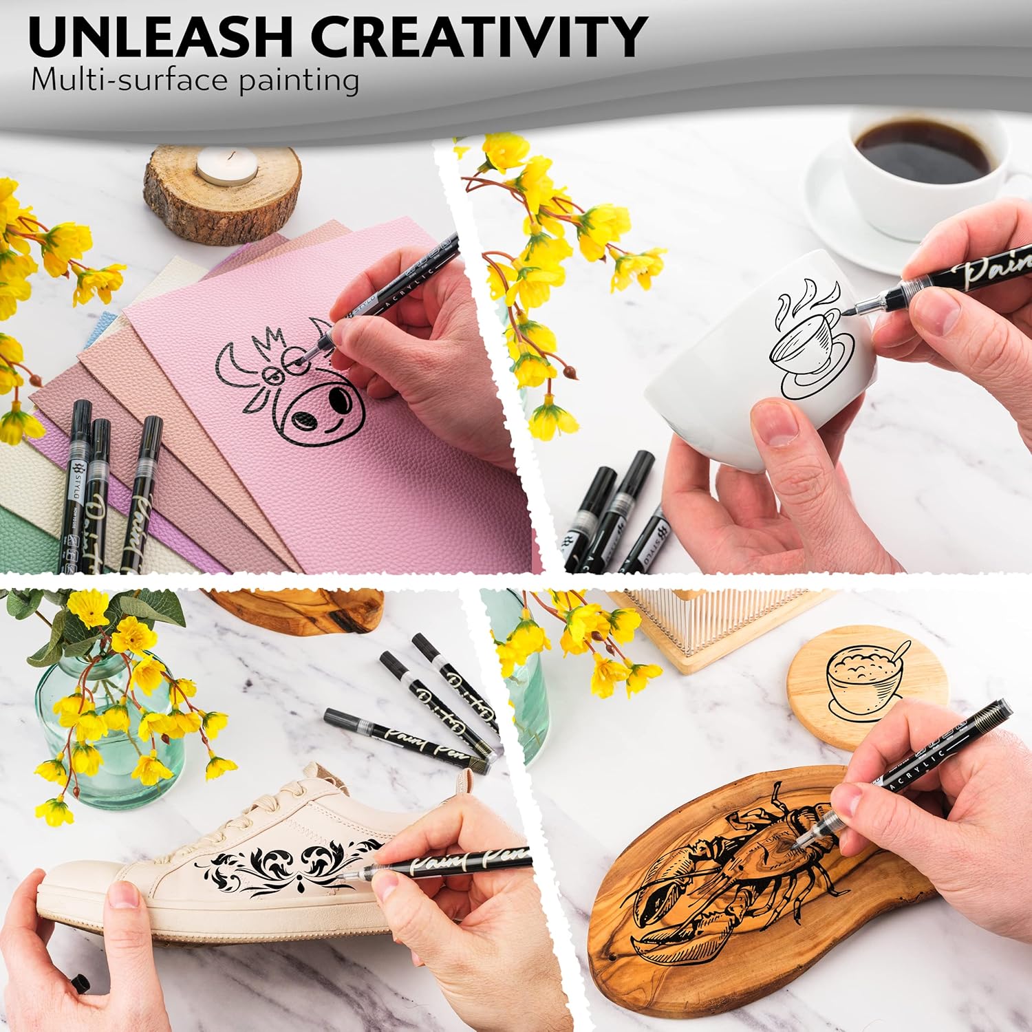 - VERSATILITY – 8 x Black marker mettalic pen suitable to work on wood, fabric, glass, ceramic, stones and other surfaces