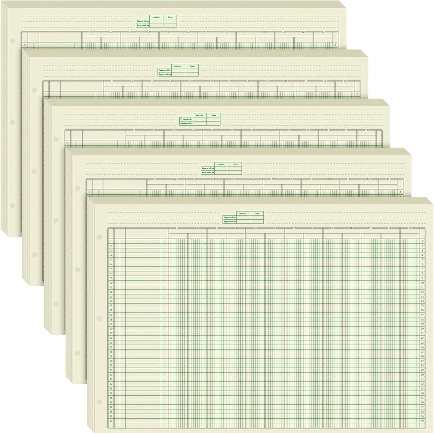 Fulmoon 5 Pack 250 Sheets Ledger Paper Accounting Columnar Pads 3 Hole Analysis Accounting Ledger Book for Business, 50 Sheets/Pack, Single Page Format, Green(16.375 x 11 Inch,13 Columnar)