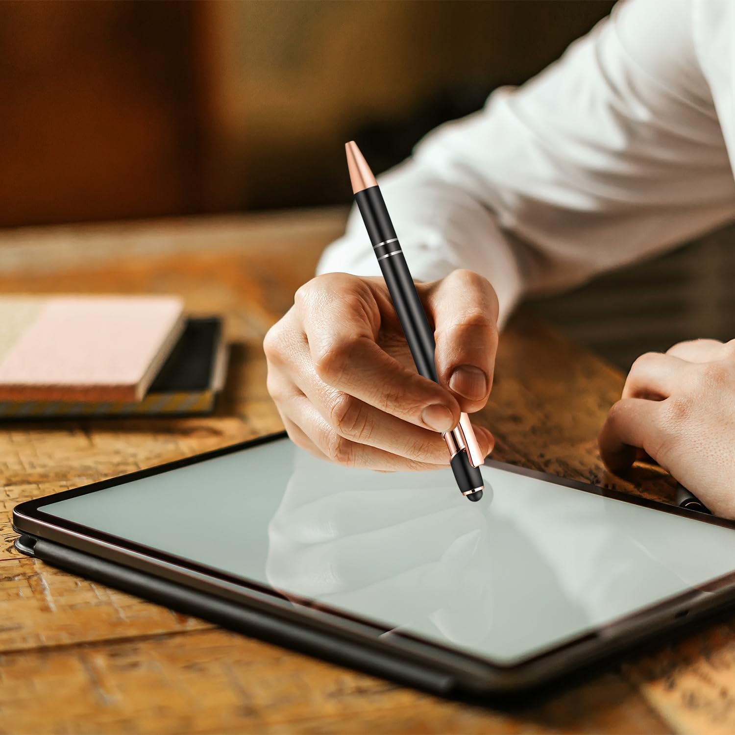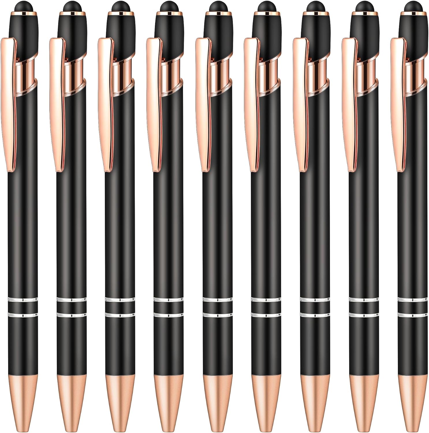 Aozora 9 Pack Ballpoint Pens Smooth Writing 2-in-1 Stylus Retractable Ballpoint Pen with Stylus tip, Office Decor Metal Stylu Pen for Touch Screens, 1.0 mm Black Ink (Black)