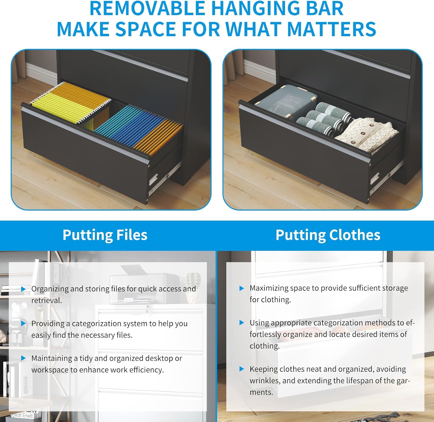 2 Drawer Lateral File Cabinet with Lock, Metal Lateral Filing Cabinet for Home Office, Steel Wide Horizontal Filing Cabinets for Letter/Legal/A4/F4 Hanging Files (Black)