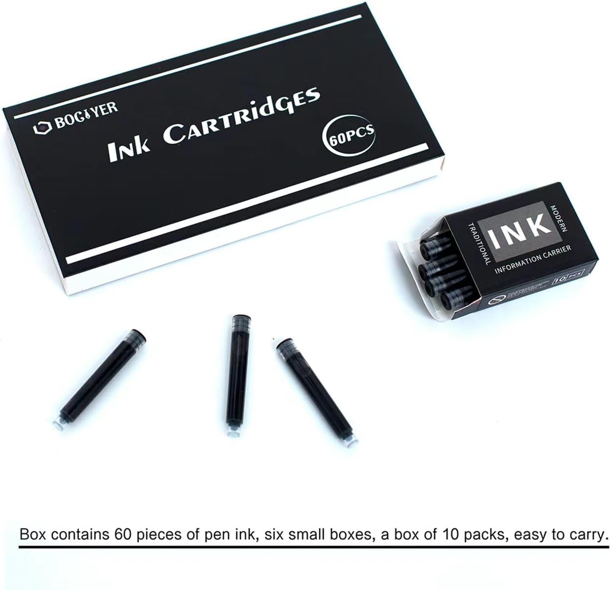 60 Count Bociyer Fountain Pen Ink Refill Cartridges | Standard International Ink Cartridge | 2.6mm bore Diameter | Black Ink