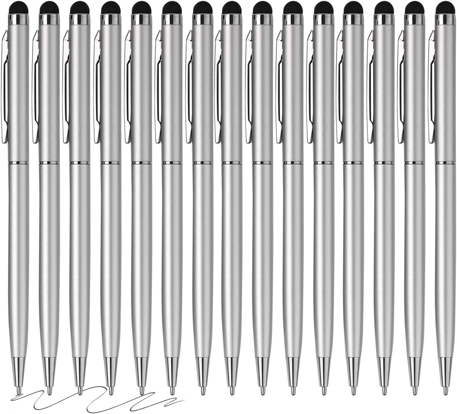 15 Pack Stylus Pens for Touch Screens Stylus Pen Compatible with Phone Tablets Kindle and Black Ink Ballpoint Pens-2 in 1 Stylists pens for Touch Screens (Silver)