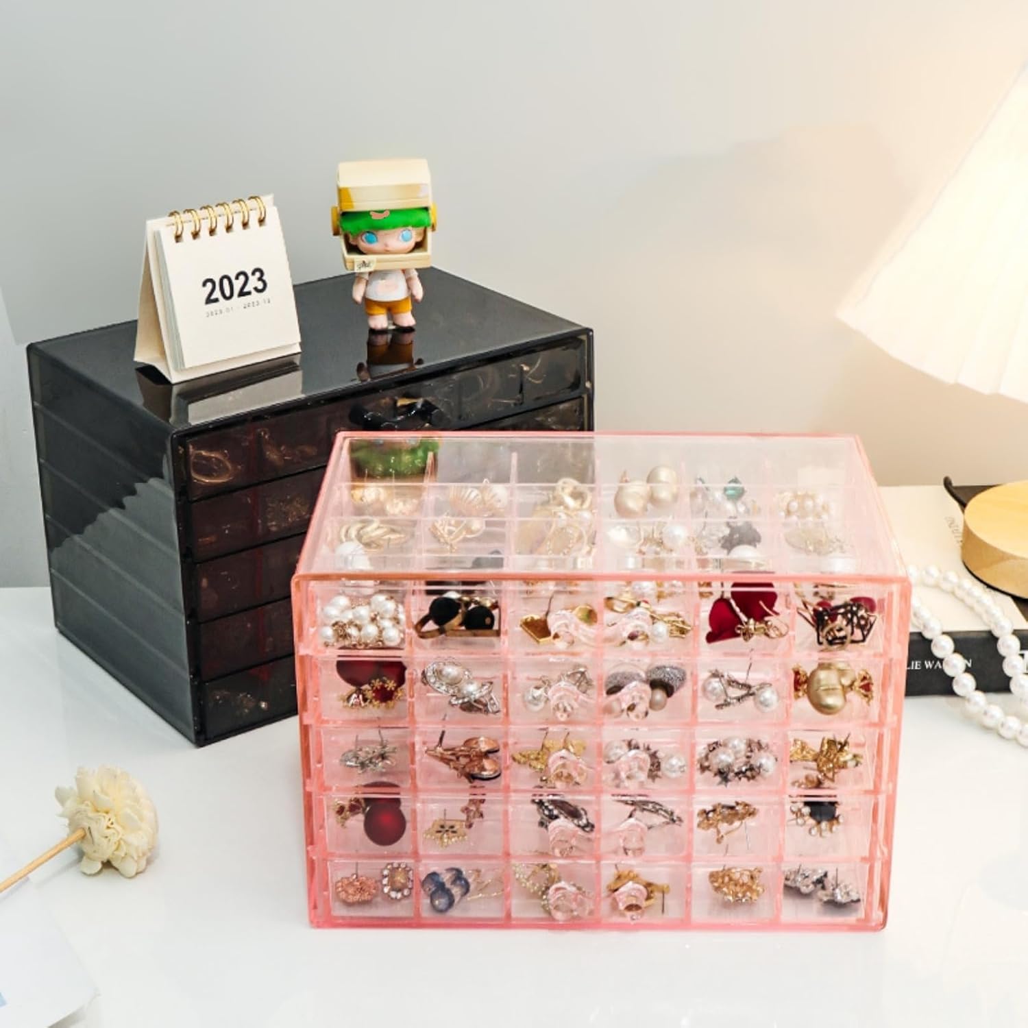 Feadily Acrylic Jewelry Organizer Box, Jewelry Drawer Organizer With 5 Drawers 120 Grids, Pink