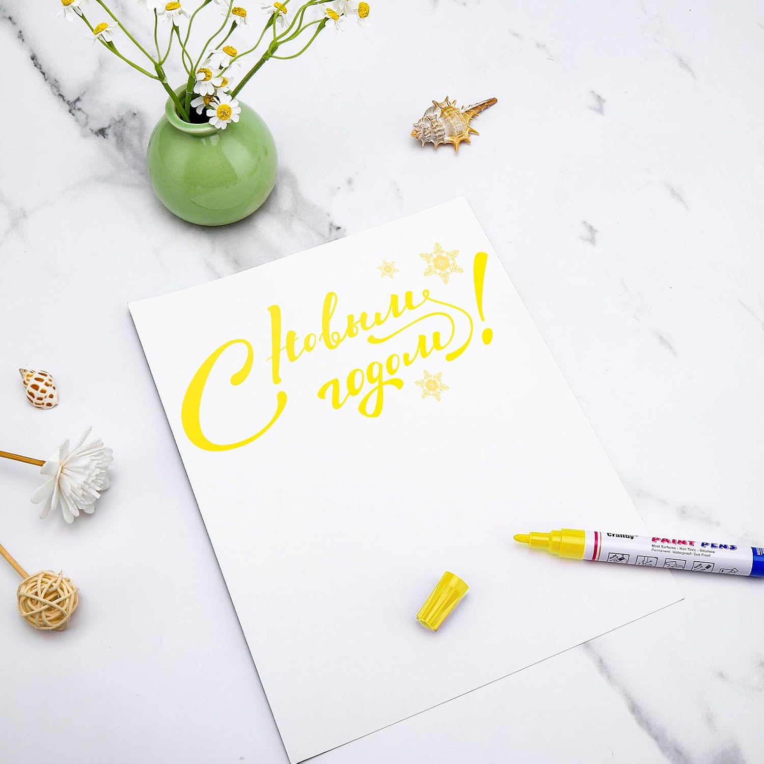 Yellow Paint Markers, 8 Pack Oil-Based Waterproof Quick Dry Permanent Paint Pen Set for Rocks Painting, Wood, Fabric, Plastic, Canvas, Glass, Mugs, Metal, Tire, Stone, DIY Craft