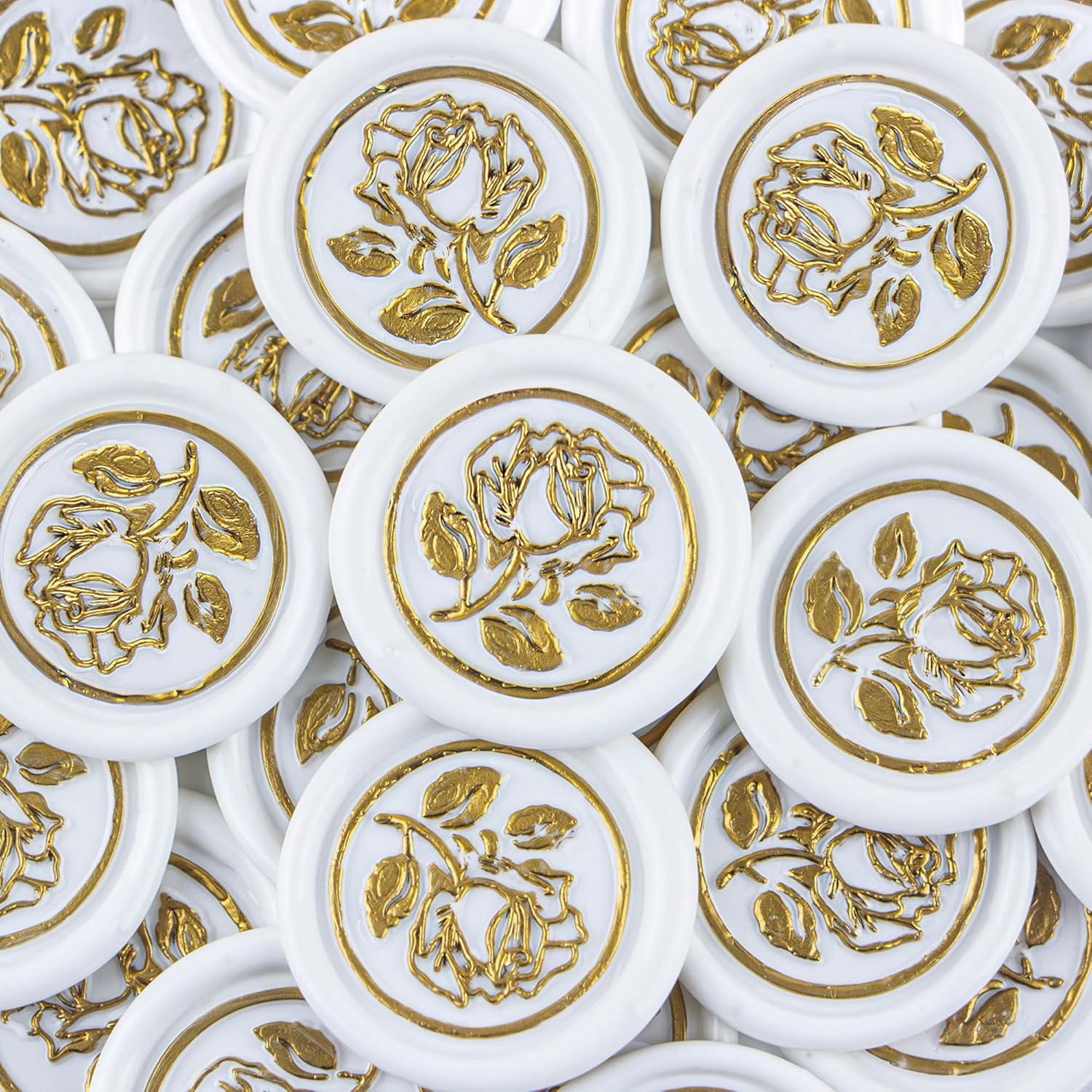 100Pcs Gold & White Wax Seal Stickers - Handmade Envelope Seals, Self Adhesive Wax Stickers for Wedding Party Invitations, Envelope, Gift Wrap, Christmas (Gold Rose Style, White)