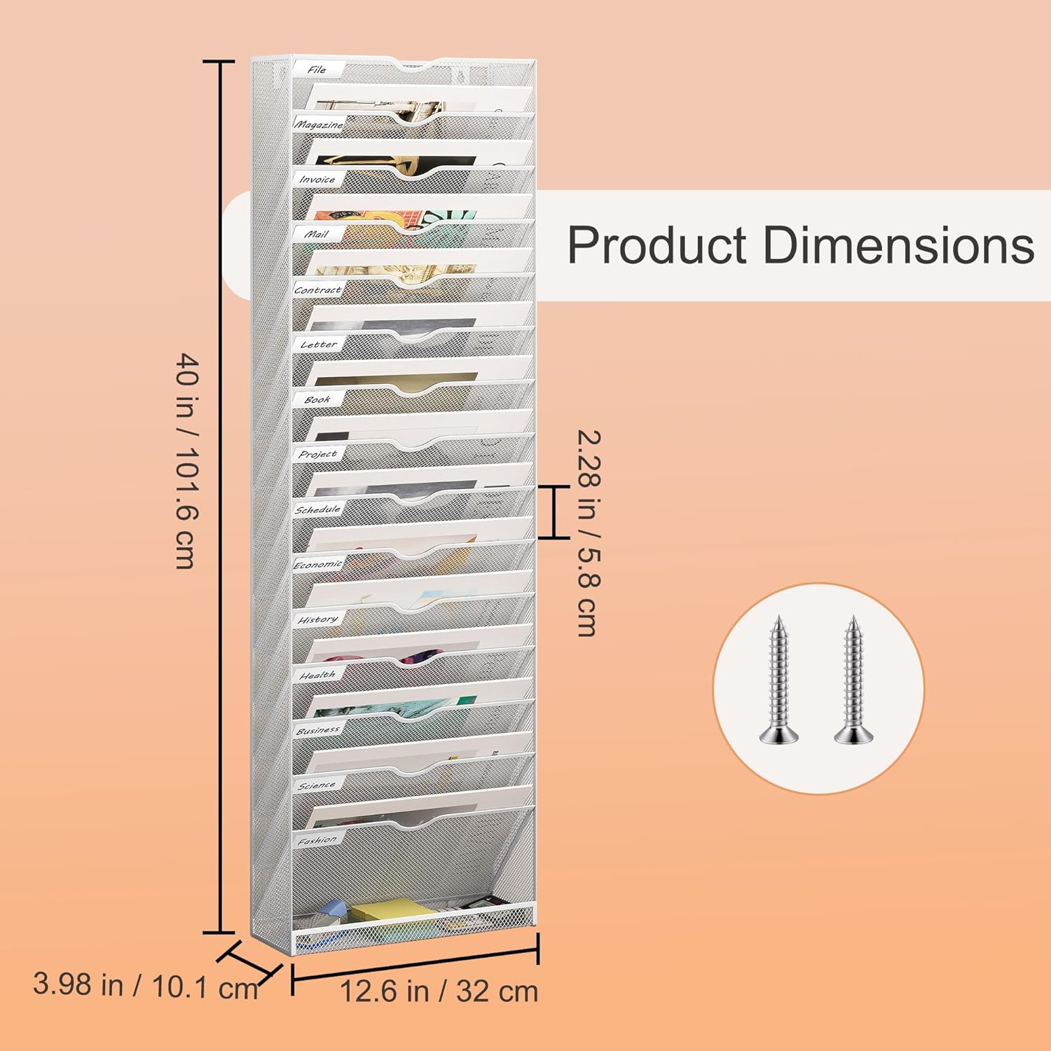 - Increased Storage Space: Measuring 12.6 x 3.98 x 40 inch, the wall file organizer's tall and narrow design maximizes vertical space, making it ideal for small spaces