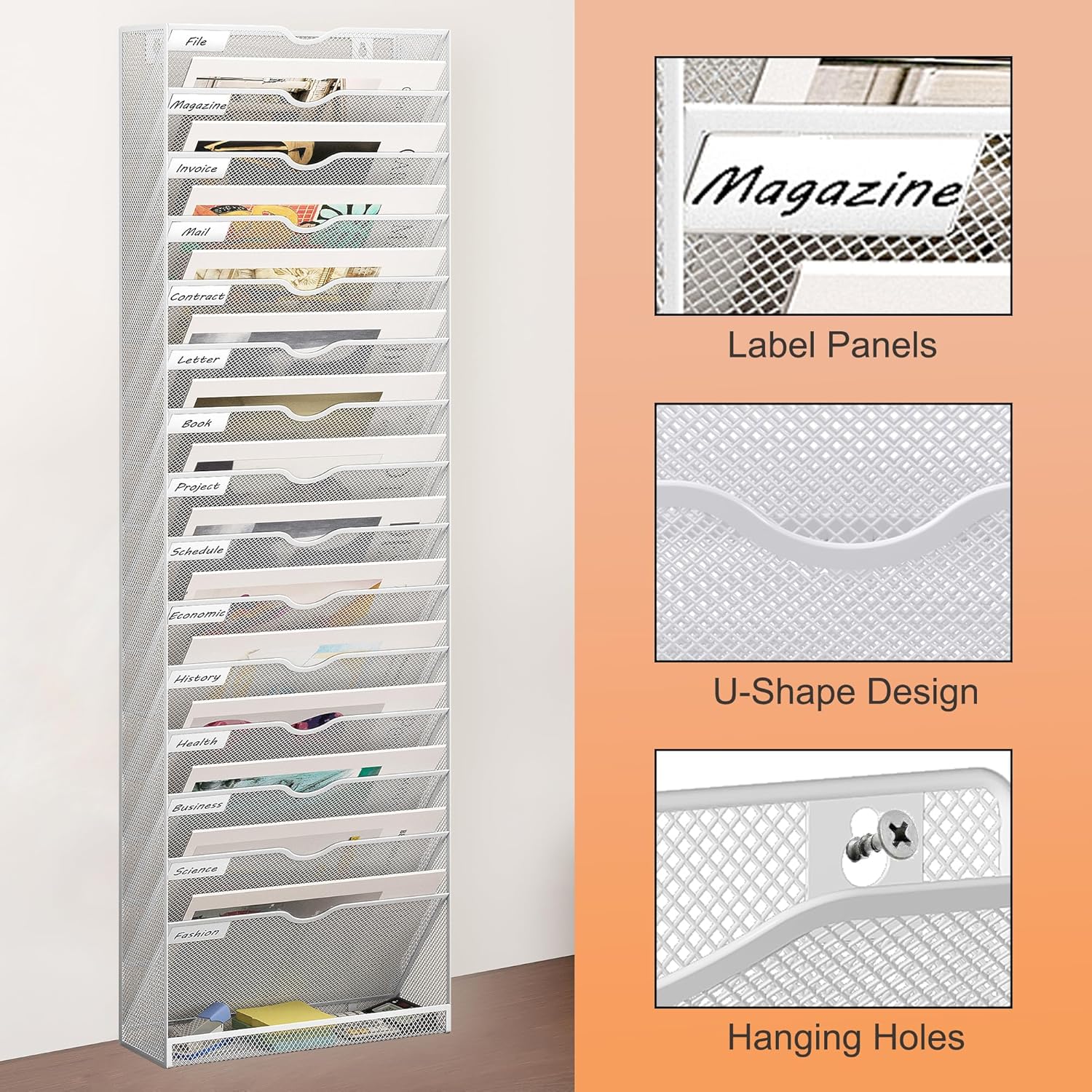 - Durable: The Mail organizer wall mounted is made of durable metal with a coating that extends the life of the wall mount. The metal mesh construction reduces weight while keeping air circulating through the wall paper organizer, so you don't have to worry about mold and mildew on your documents or papers