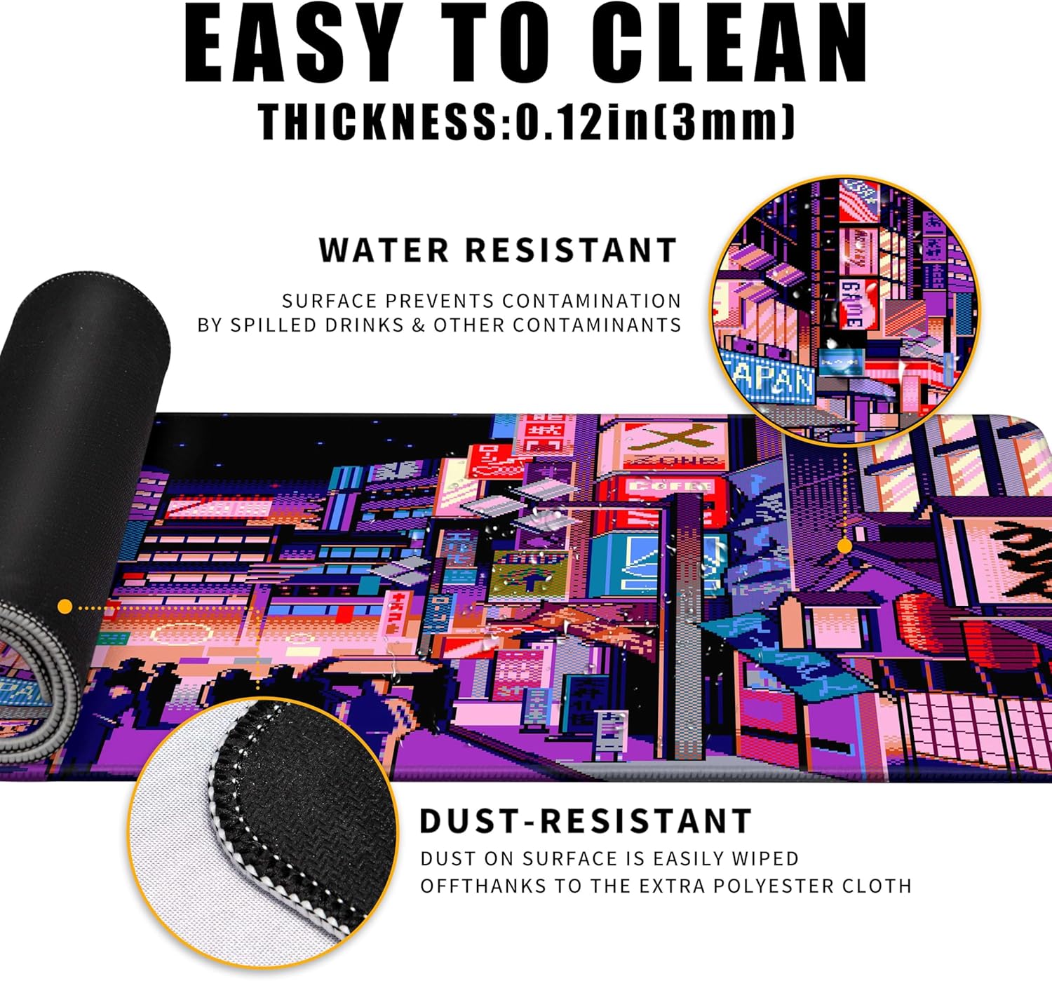 Japanese Large Mouse Pad XL - Anime Extended Gaming Mouse Mat Desk Pad,3mm Thick Long Non-Slip Rubber Base Mice Pad,Stitched Edges Mousepad,31.5 X 11.8 Inch - Tokyo Pixel Street