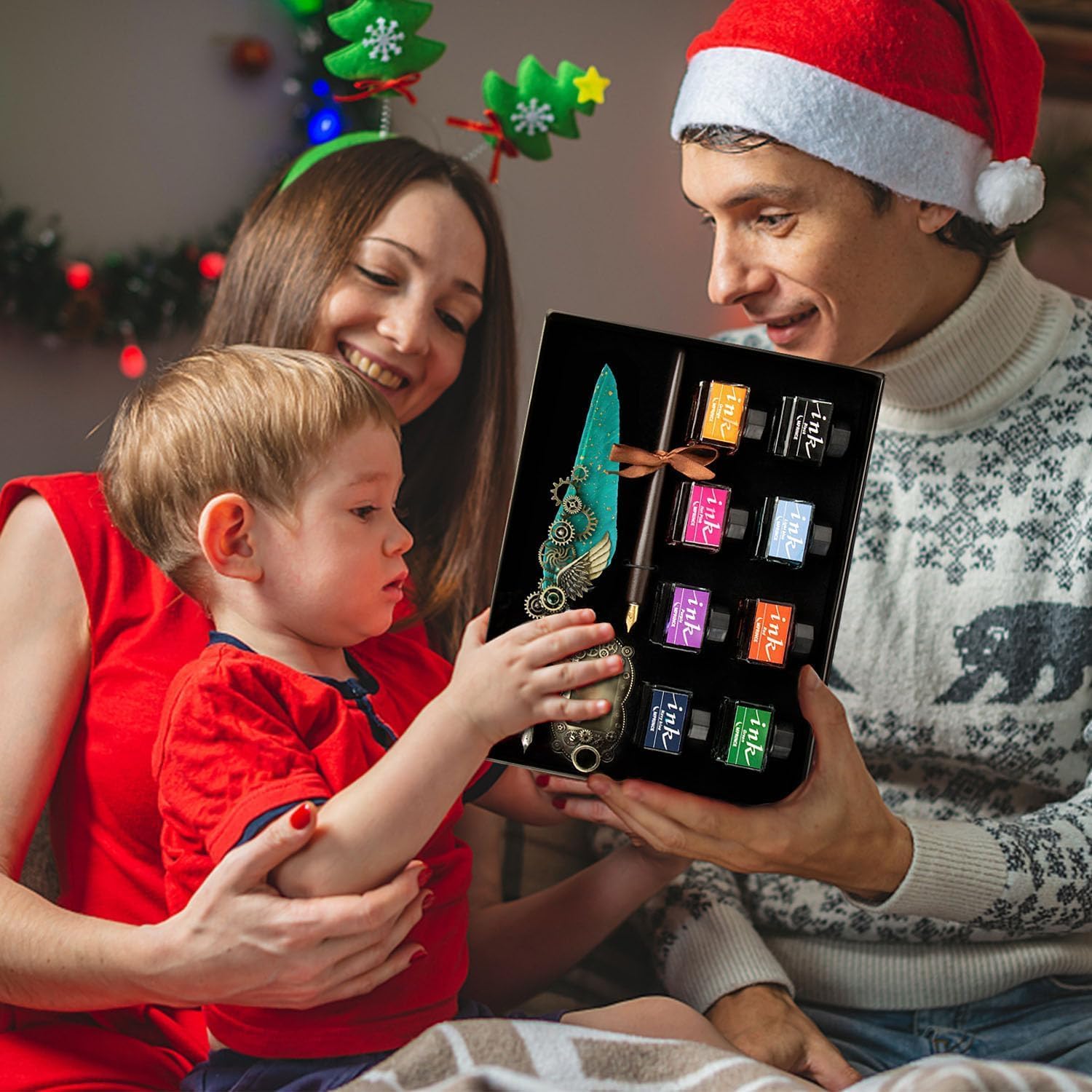 - 【Quill Pen Ink Set Included】: 1* Quill Pen,1* Wood Dip Pen, 8* Ink(Black/Light Blue/Red/Green/Orange/Pink/Purple/Dark Blue),1* Pen Holder,13* Stainless Steel Nibs Of Different Sizes,1* Envelope And Writing Paper,1*Exquisite Gift Box,The Unique And Beautiful Punk Mechanical Gear Design Is A Beautiful Landscape No Matter It Is Placed On The Desk, Coffee Table Or Computer Desk