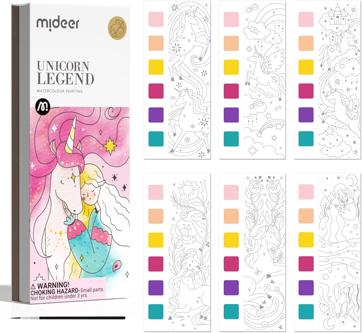 MiDeer Watercolor Painting Book for Kids Ages 4-8, Pocket Watercolor Painting Book Arts and Crafts for Toddlers, Travel Activities Paint with Water Coloring Book Set for Kids 3-8 (Legend Unicorn)