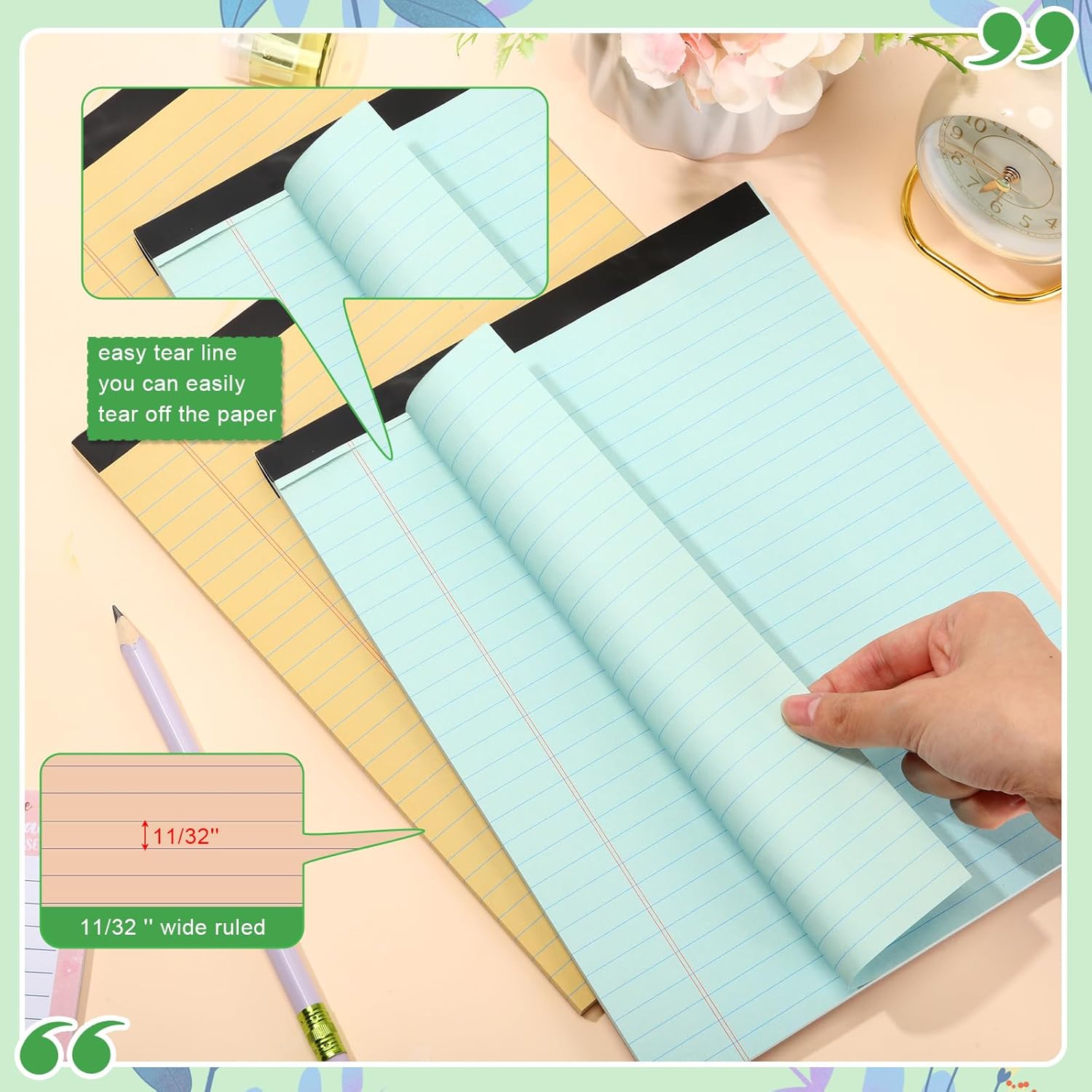 Fuutreo 8 Pcs 8.5'' x 11'' Colored Legal Pad Writing Pads Wide Ruled 50 Sheets Per Notepad Perforated Writing Notepad Office Supplies for School College Office Business (Pastel Colors)