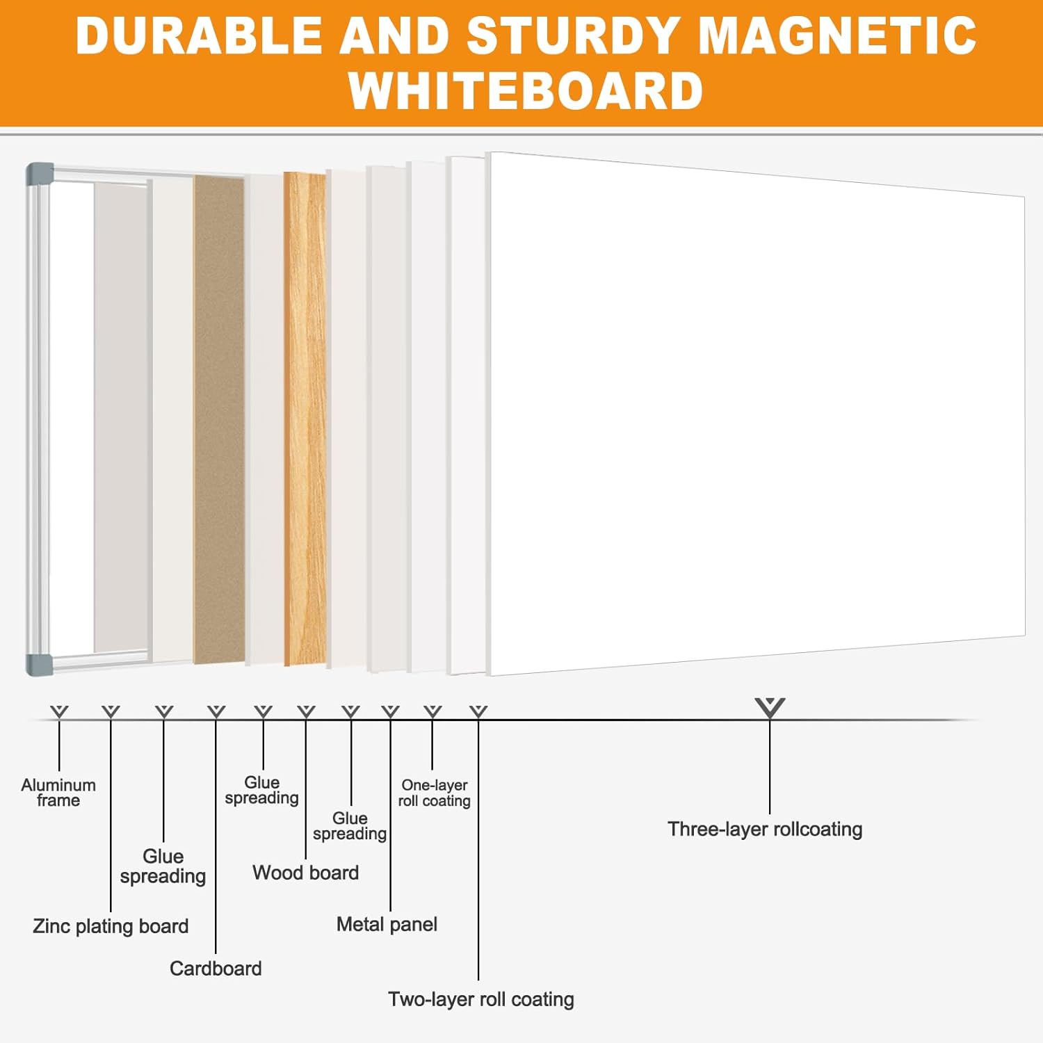 - PREMIUM MAGNETIC DRY ERASE BOARD: Crafted with a specially lacquered surface for a smooth and durable writing experience, our magnetic dry erase board boasts high-quality construction. The robust silver aluminum frame is scratch-resistant, and the ABS plastic corners with secure screw-fixing ensure safety and long-lasting durability. The detachable marker tray keeps writing essentials within reach, emphasizing convenience and safety without any sharp edges.