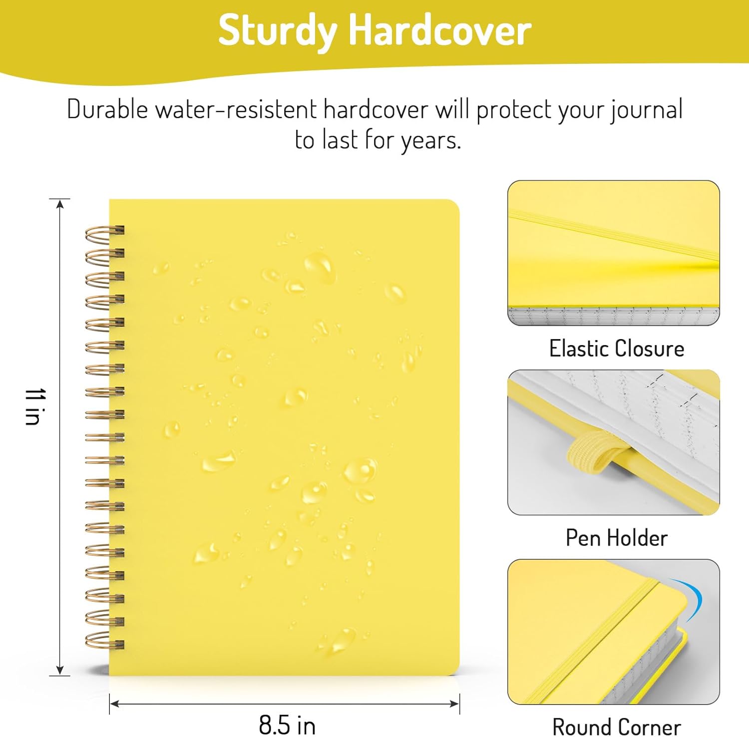 - Strong Metal Twin-wire: Feature a super durable Golden double wire spiral binding with heavy-duty hardcover; making it easy to fold over and laying the notebook totally flat easily, giving you a better writing experience. The Professional durable hardcover will protect your journal to last for years. Product Dimensions: 11 in (L), 8.5 in (W), 1.0 in (H).