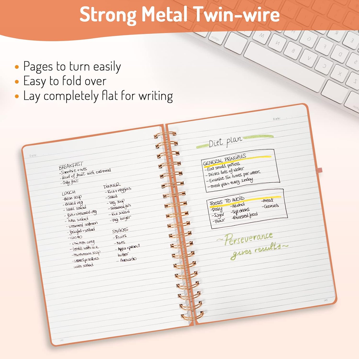 - Strong Metal Twin-wire: Feature a super durable Golden double wire spiral binding with heavy-duty hardcover; making it easy to fold over and laying the notebook totally flat easily, giving you a better writing experience. The Professional durable hardcover will protect your journal to last for years. Product Dimensions: 11 in (L), 8.5 in (W), 1.0 in (H).