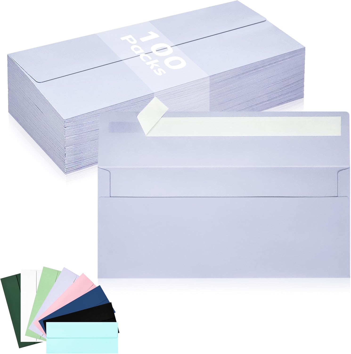 - 【Light Purple #10 Business Envelopes】These #10 business envelopes feature a light purple color. The envelopes kit contains 100 pieces 4 1/8 x 9 1/2 Inches light purple envelopes, perfect for your office or home purposes