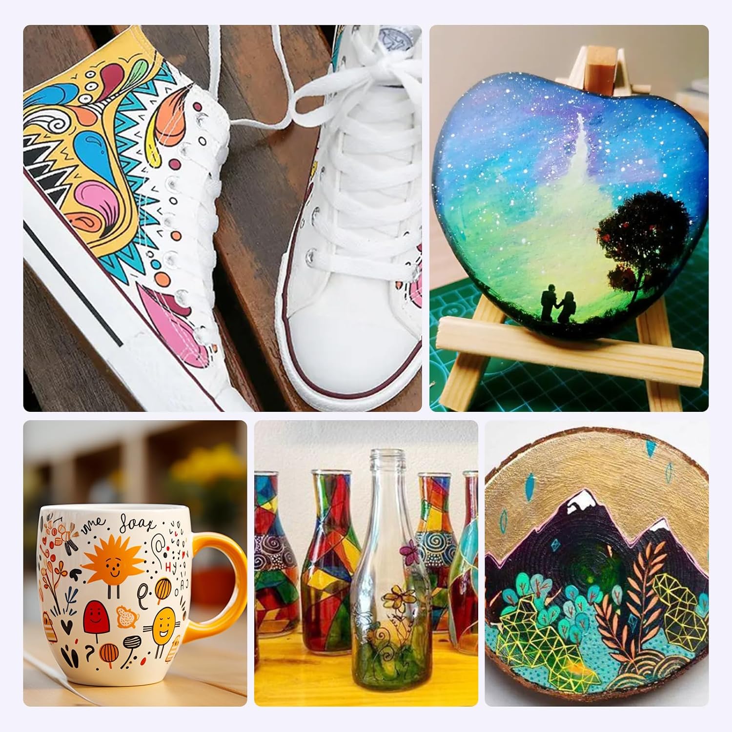- 🌲【Multi-Purpose】These paint pens works on almost any surfaces, such as metal,glass,plastic,canvas,stone, paper, ceramic, rock, fabric,mug,wood etc. Perfect for DIY projects, card marking, journals, planners, coloring books,scrapbooks etc.