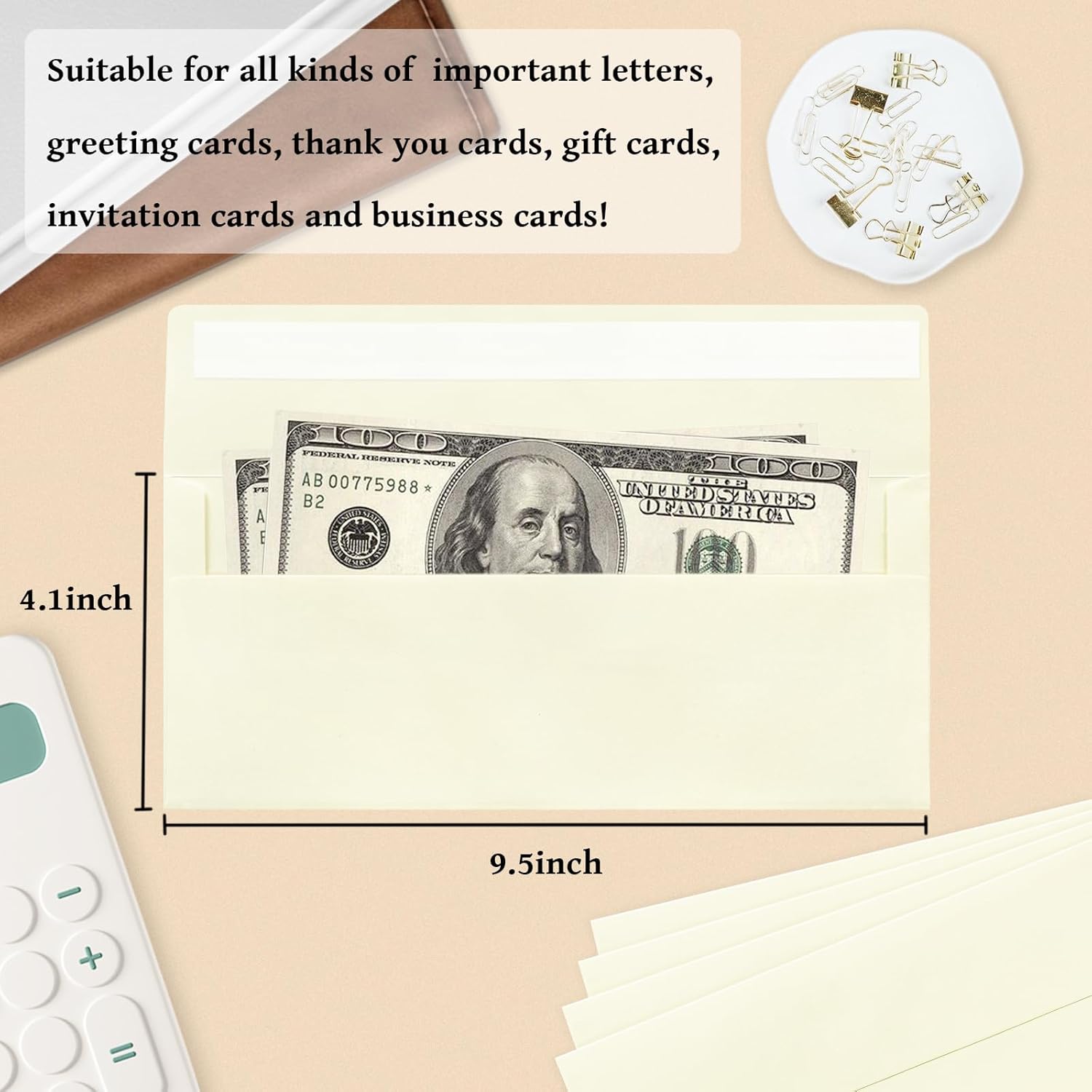 - 【Ivory #10 Business Envelopes】These #10 business envelopes feature a ivory color. The envelopes kit contains 100 pieces 4 1/8 x 9 1/2 Inches ivory envelopes, perfect for your office or home purposes