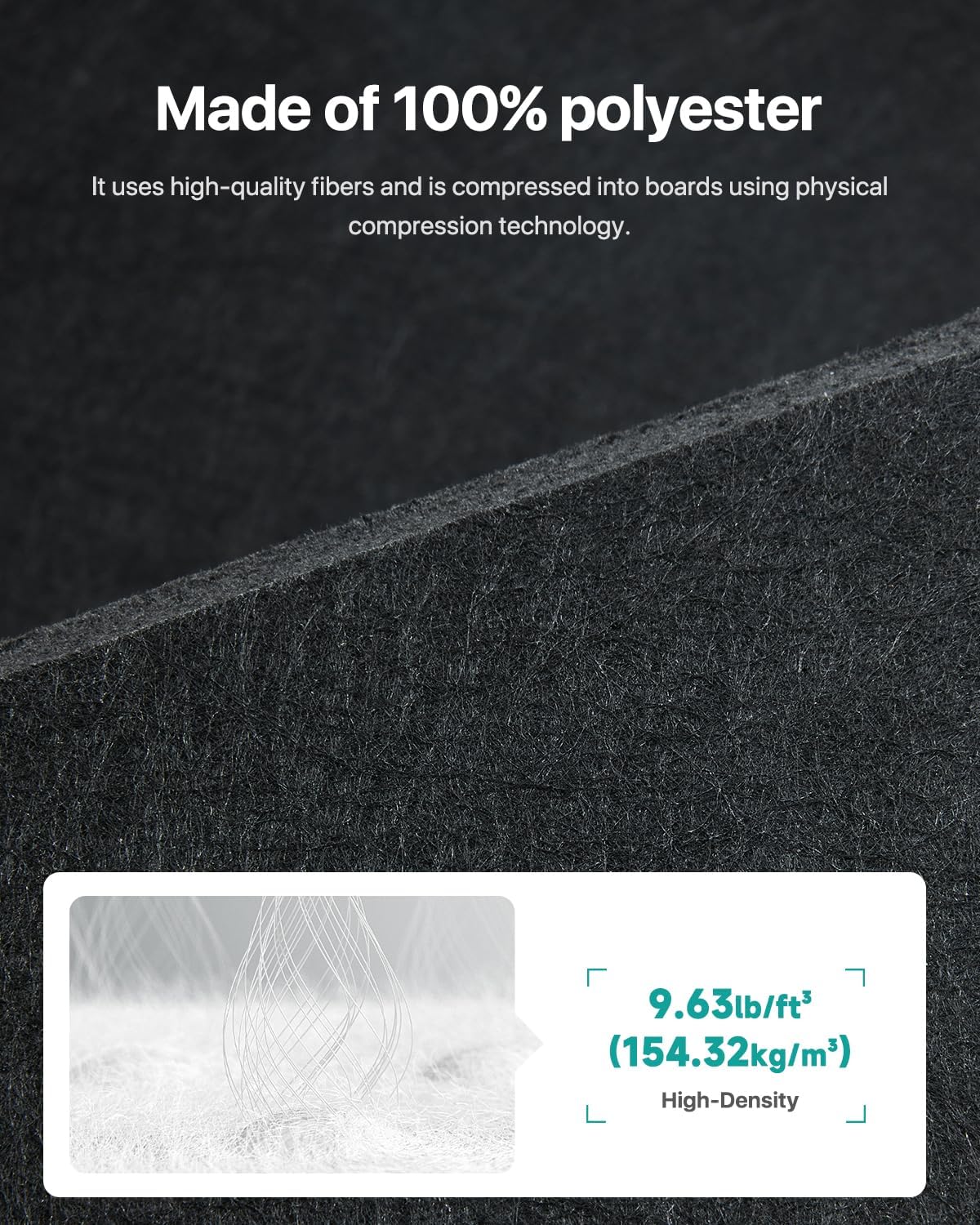 - High-Quality Material: Sound proof panels for walls made of 100% high-quality polyester fiber;soundproof foam panels are durable and wear-resistant