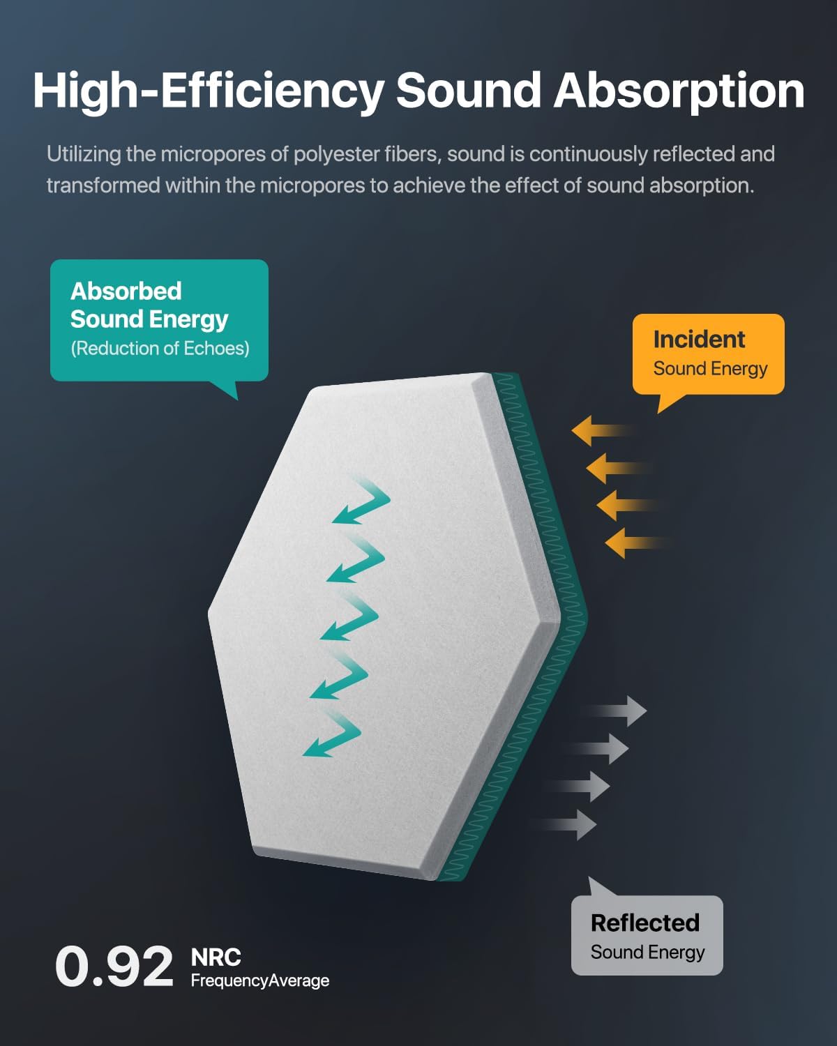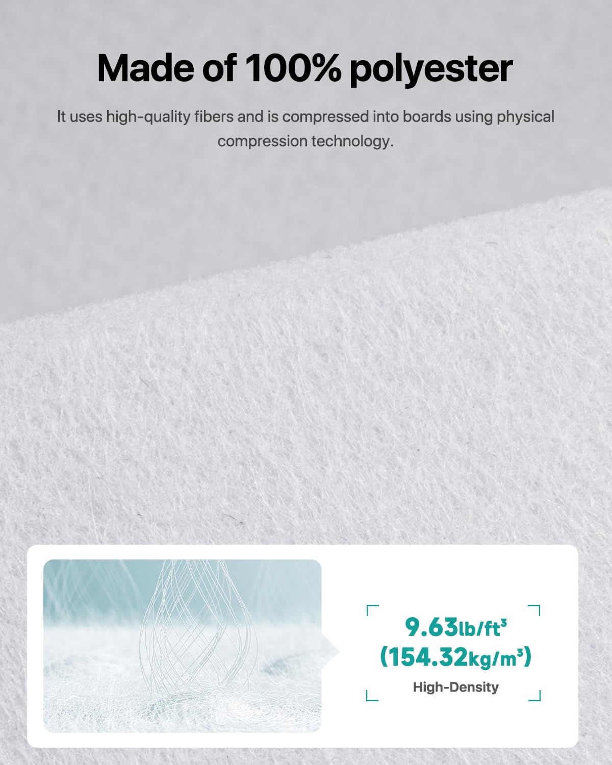 - Sound-Absorbing Principle: High-quality polyester fiber material and porous structure capture and absorb air vibrations in sound waves;reduce sound reflection and echo;improve sound clarity and purity;install as a whole for higher noise reduction