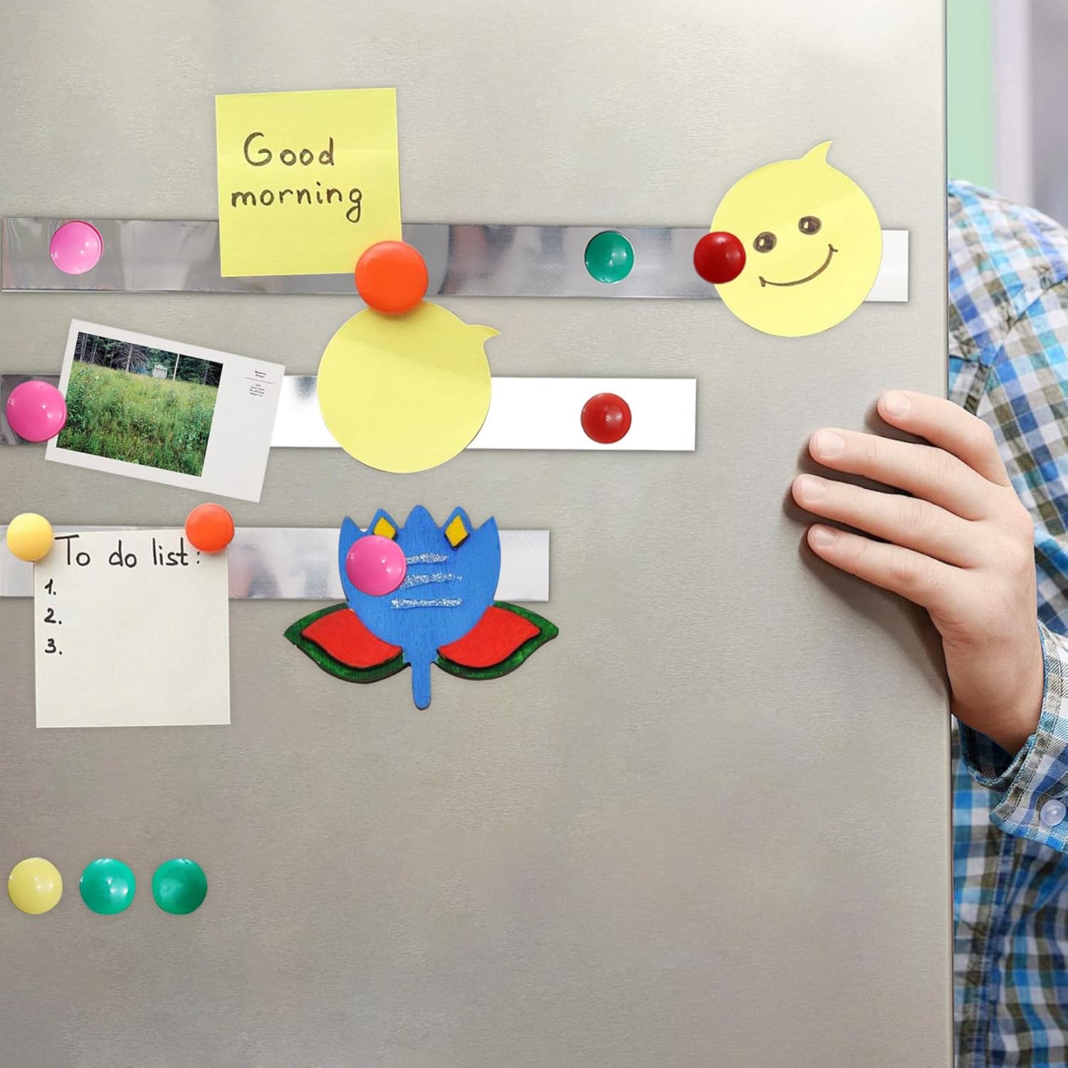 - Easy to Use: Just cut, peel and stick, simple operation is easy to get started. Then you can use a dot magnet and stick the memos or notes to the metal strip for easy viewing and use. This allows labels to be attached to non metallic surfaces, likes the wall