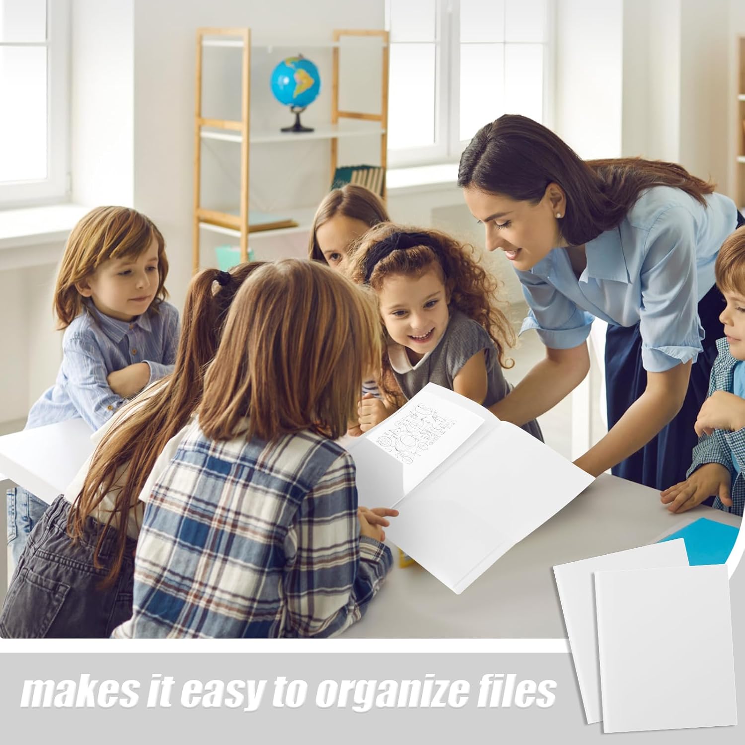 - Enough Quantity to Use and Replace: you will receive 150 pieces white plastic folders, each is designed with 2 pockets, fitting 8.5 x 11 inch letter size paper; Each pocket can stack 50 pages of letter size paper easily and neatly