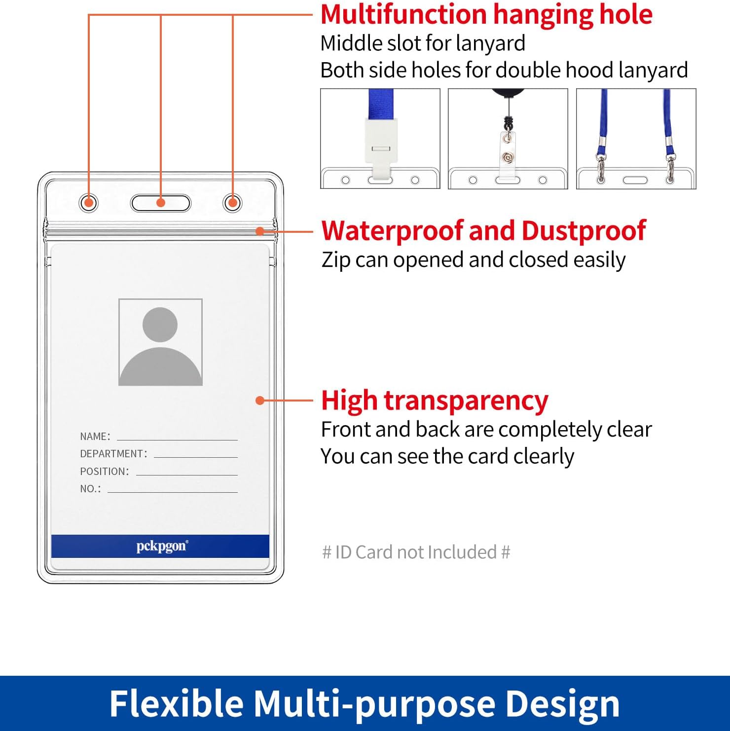 - 【Strong & Flexible Material】The plastic name badge holders is super transparent, light weight, soft, wear-resistant, corrosion-resistant. The badge holder folded and unfolded many time without leaving a trace. The hanging slot/holes will not break, distorted many time.
