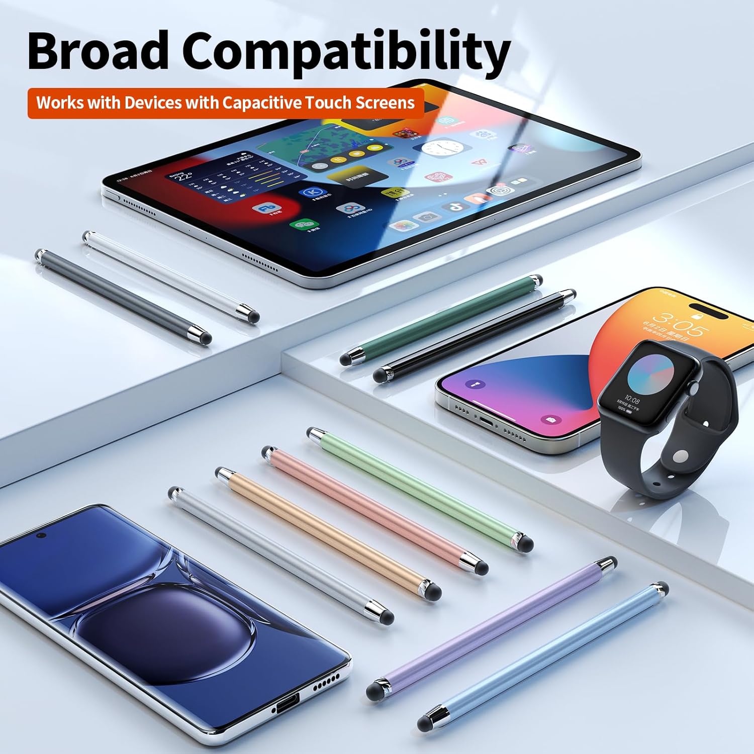- 【Wide Compatibility】Universal styluses for use with touch screen devices including smartphones, Apple iPad/ iPhone/ iPod/ Android tablets and other capacitive touch screen devices. You can use it like a real pen.
