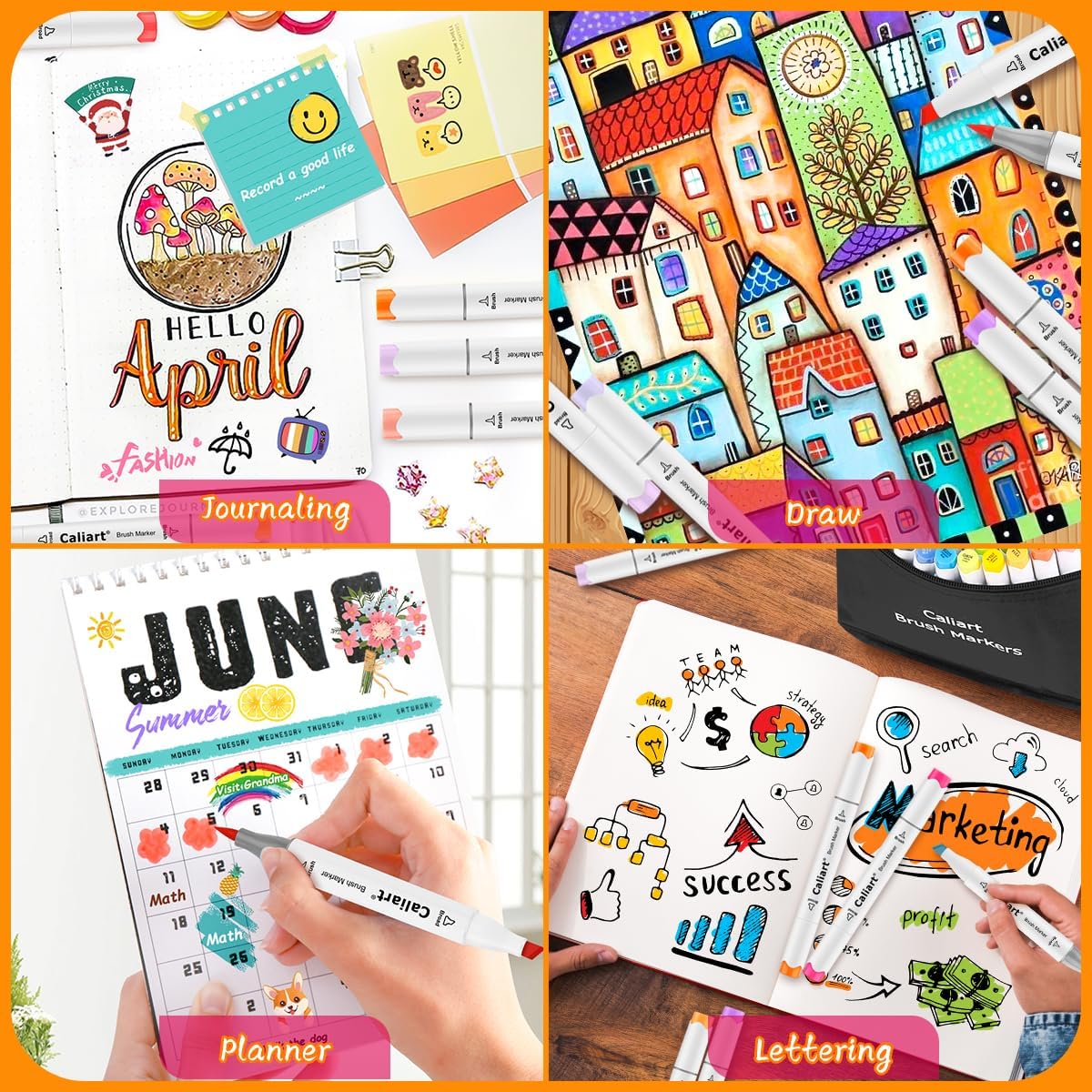 - šØ Color-Coded Caps & Bonus Case: The color-coded caps allow for ease in organization and to identify colors quickly. Ergonomic design makes working with these brush marker pens easy for a long time. Equipped with a beautiful form-fitting black carrying case perfect for traveling and storing! Great gift for Christmas, Thanksgiving, art teachers, school students, families, friends, women, kids, girls. Feel totally free to contact us for a replacement if the original item has any defect.