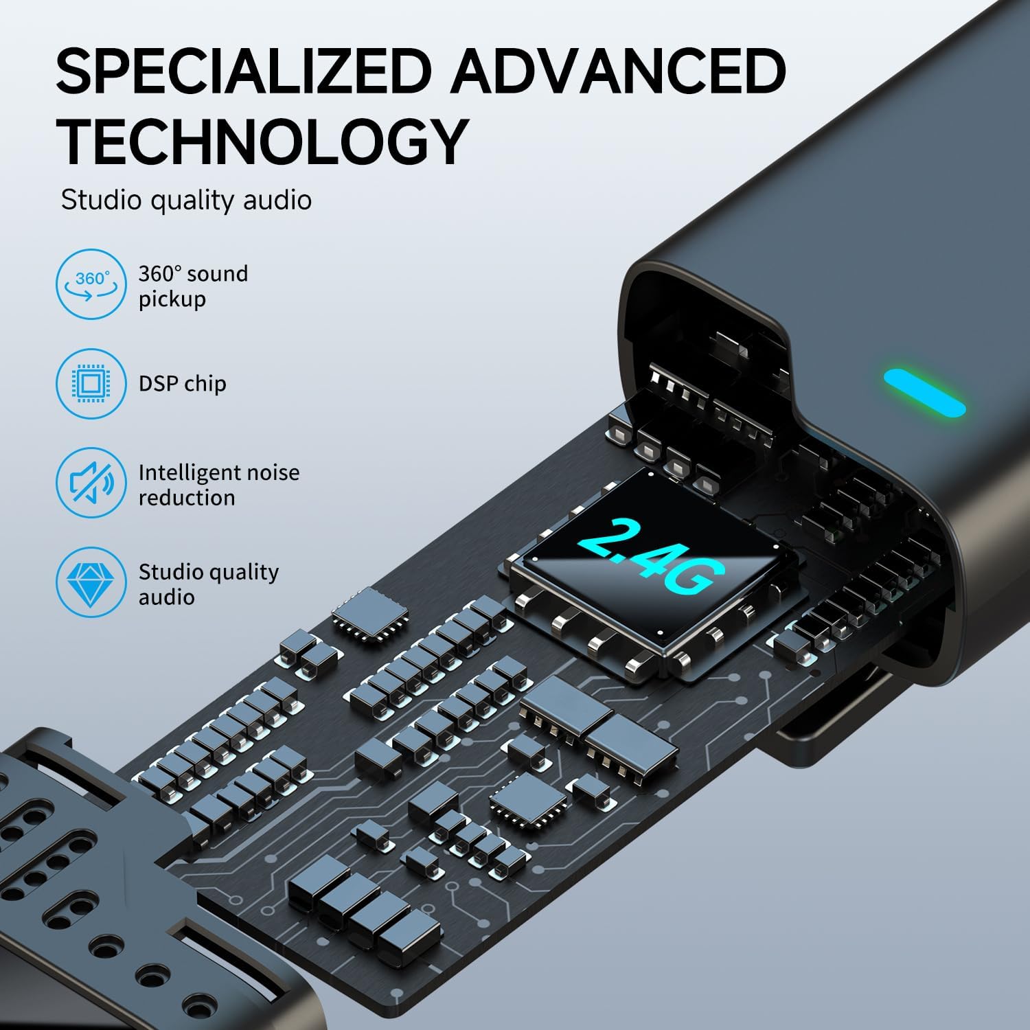 - Omnidirectional Mic with Noise Reduction: The built-in intelligent active noise Cancellation chip and advanced 2.4GHz transmission technology, which allows you to record clearly in noisy environments, which can provides more vivid, soft, natural and stereo sound around for recording or real time video.