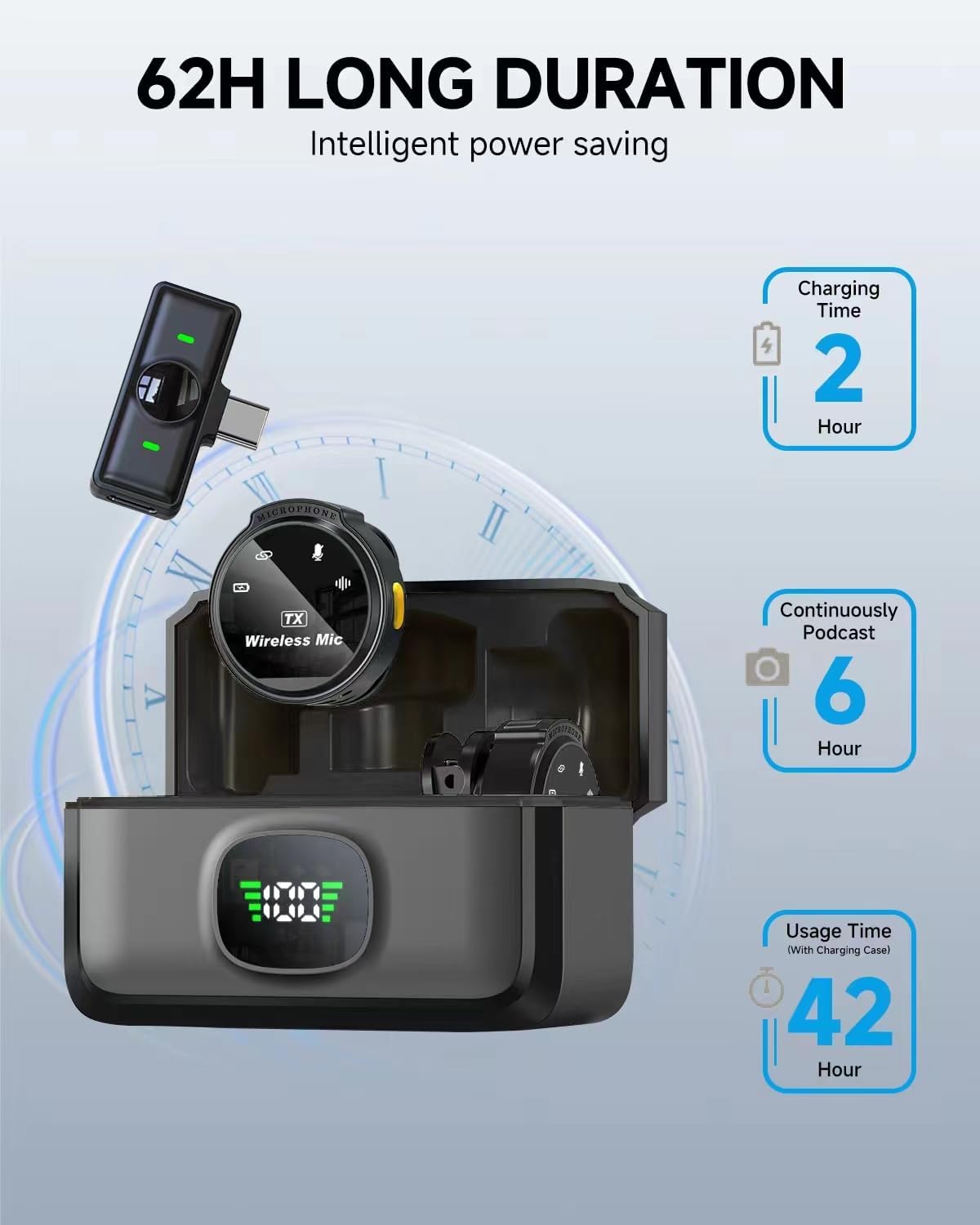 - 165FT Wireless Transmission & Rechargeable: This lavalier microphone boasts a consistent audio signal, capable of reaching a remarkable wireless transmission distance of up to 165 feet. Equipped with a high-quality DSP chip, it ensures even more stable transmission. The wireless microphone transmitter features a built-in rechargeable battery, offering up to 6 hours of operation on a single charge, or an impressive 42 hours with the charging case